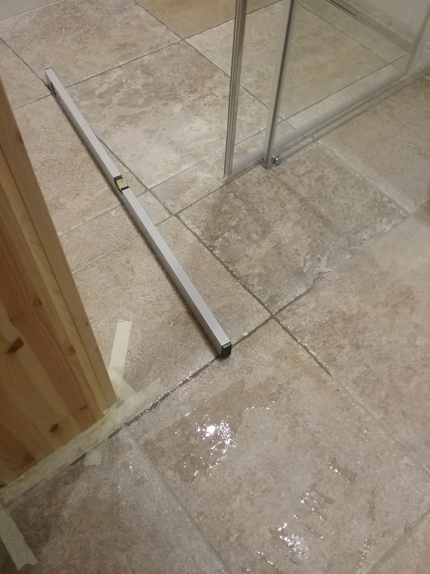 Fliesenleger: bodengleiche Dusche mit Stufe und schlechtes Fugenbild