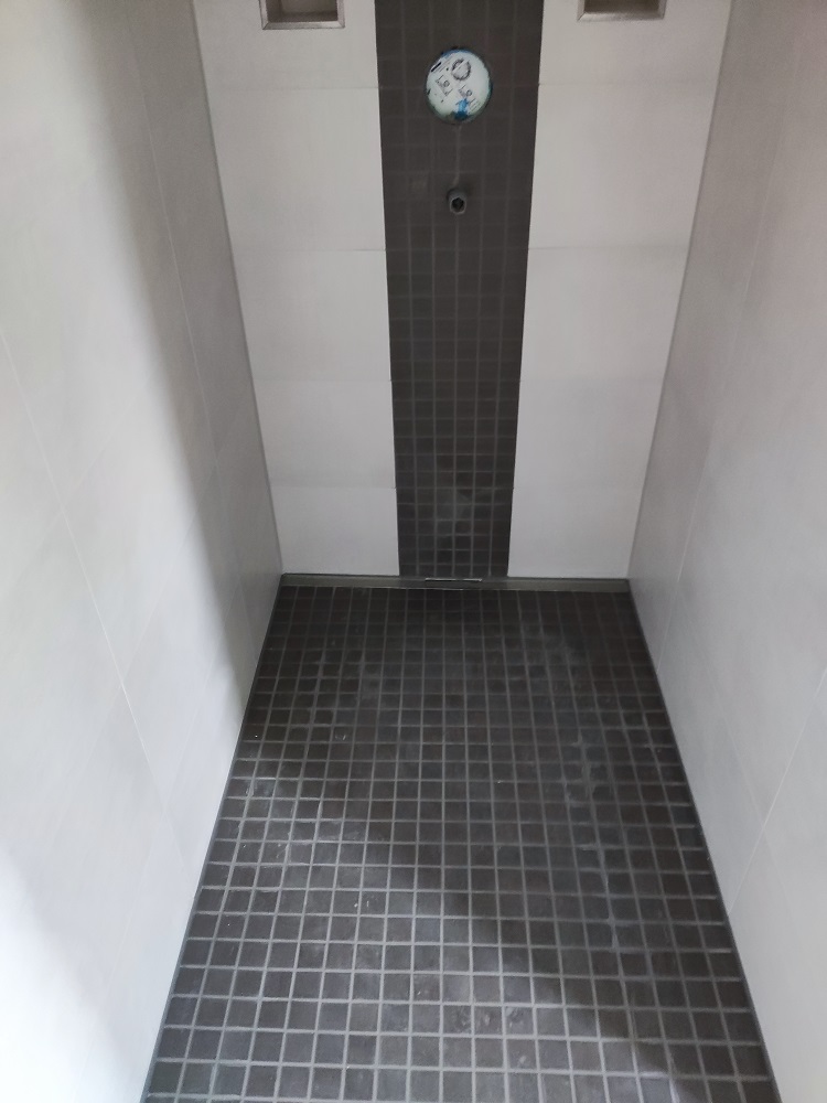 Fliesenleger: bodengleiche Dusche mit Stufe und schlechtes Fugenbild