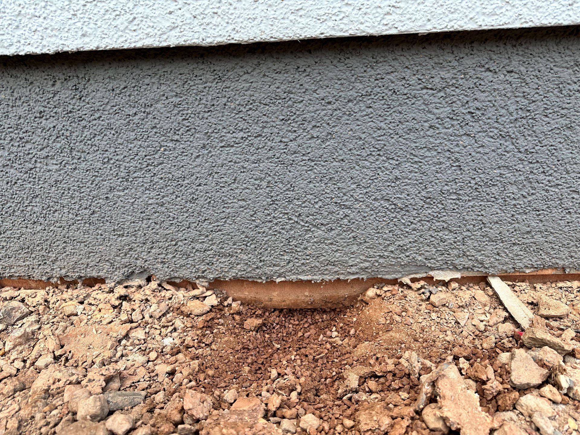 Bodenplatte Abdichtung: Hallo zusammen, habe ein Haus gekauft, Fertighaus BJ2022. Auf Bodenplatte. Warum auch immer ist er etwas „versenkt“ und die Putzunterkante ist... -