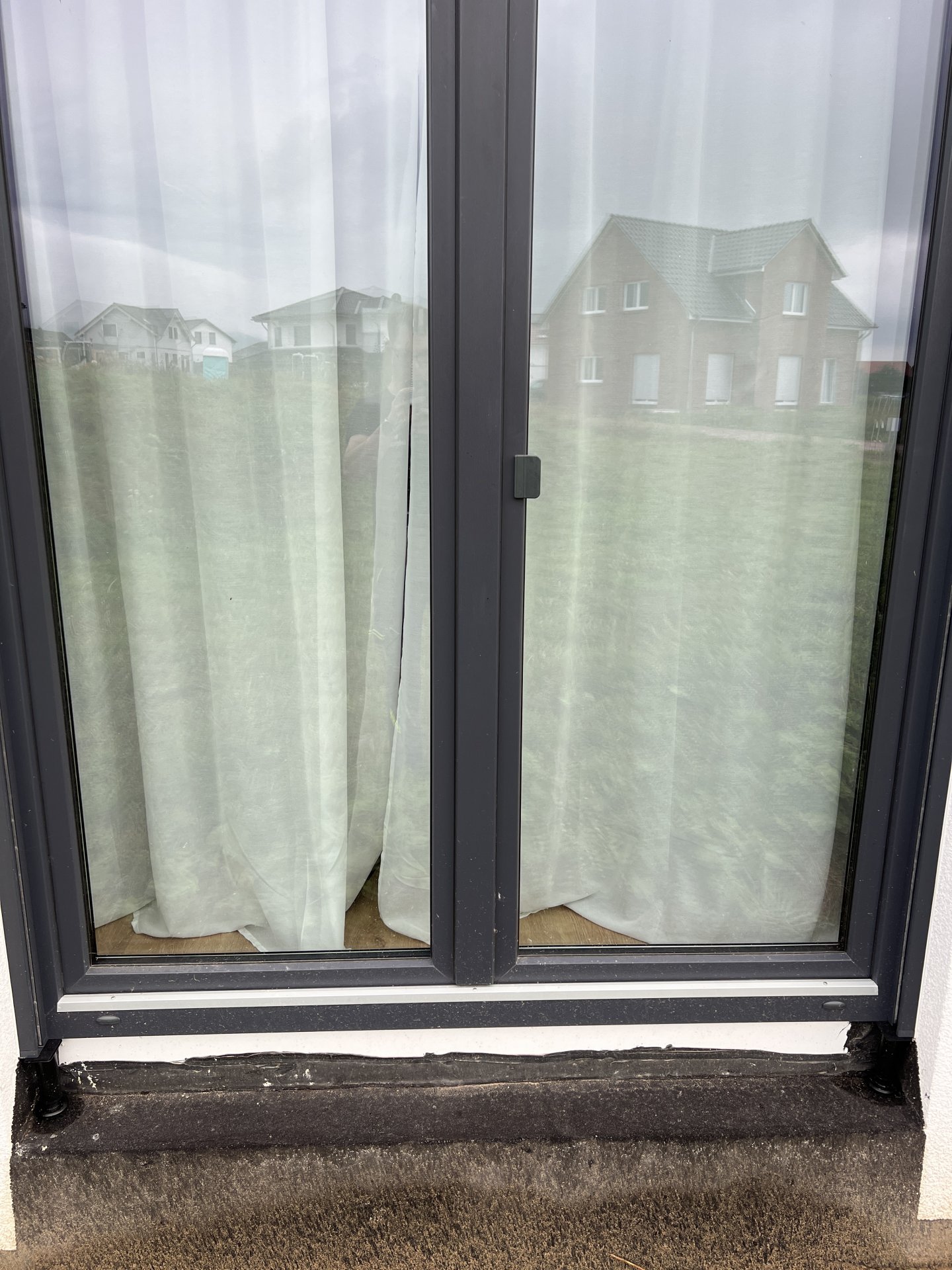 Diskutiere Bodentiefes Fenster Riss Bitumenschicht im Fenster/Türen Forum im Bereich Neubau; Guten Morgen, ich habe eben bei unserem Neubau festgestellt, dass bei einem bodentiefen Fenster die Bitumenschicht einen Riss hat. Unser Haus ist...