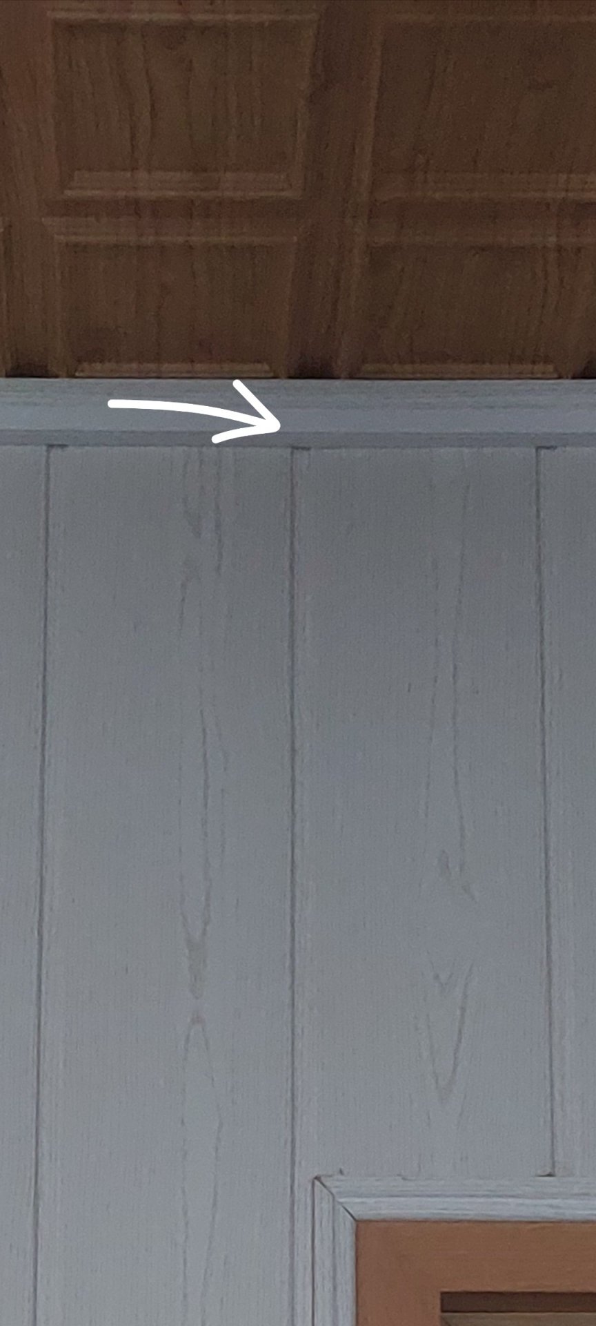 Auf der Seite, wo das Loch in die Wand gebohrt wurde, ist die Decke ein paar Zentimeter höher als auf der anderen Seite. Das wurde jedoch vorher eigentlich gemessen vom Elektriker. Ich hatte auch schon einen dünnen Stab in das Loch gesteckt, der zeigt vom Winkel, dass leicht nach oben gebohrt wurde