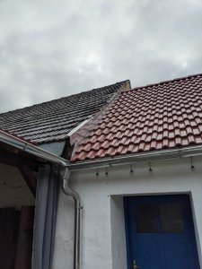 Draußen das Blech am Foto ist nur provisorisch, da ich den gemauerten Ortgang beim runternehmen der Dachsteine beschädigt habe.
