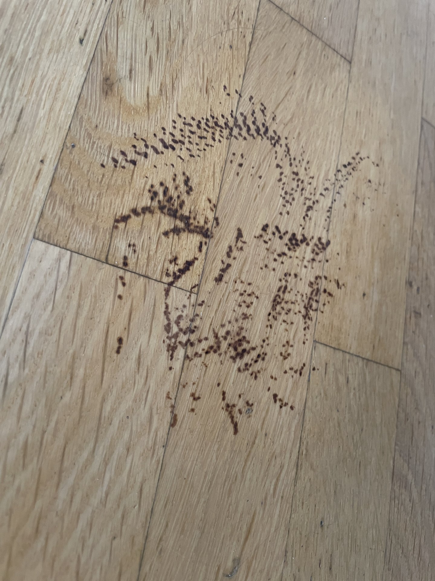 Diskutiere Braune Flecken im Parkett im Sanierung konkret Forum im Bereich Altbau; Hallo, ich habe neulich einen noch leicht feuchten Häkellappen auf dem Boden liegen lassen (und war erst einmal zwei Tage weg) und jetzt sieht es...