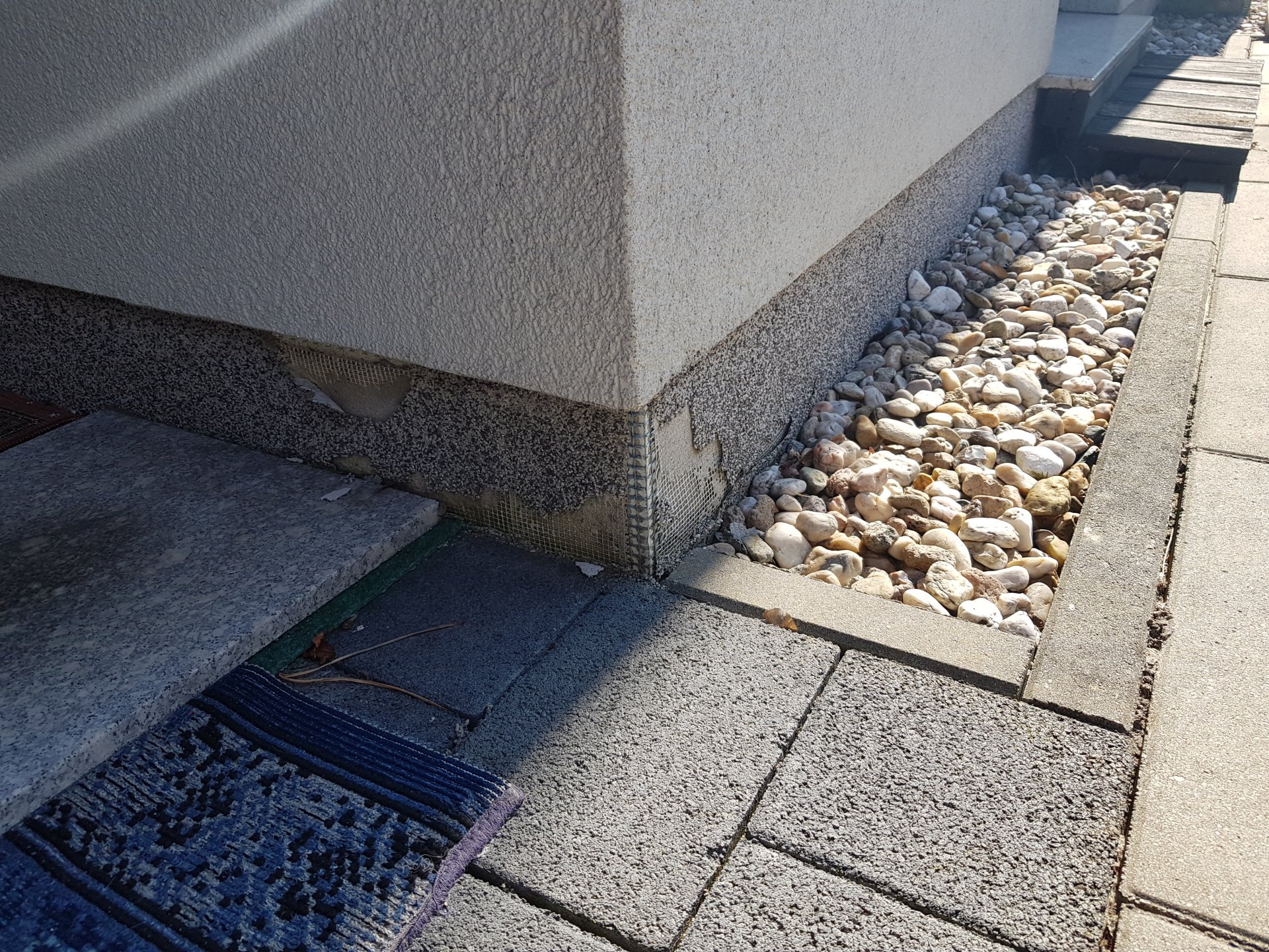 Buntsteinputz außen im Sockelbereich bröselt