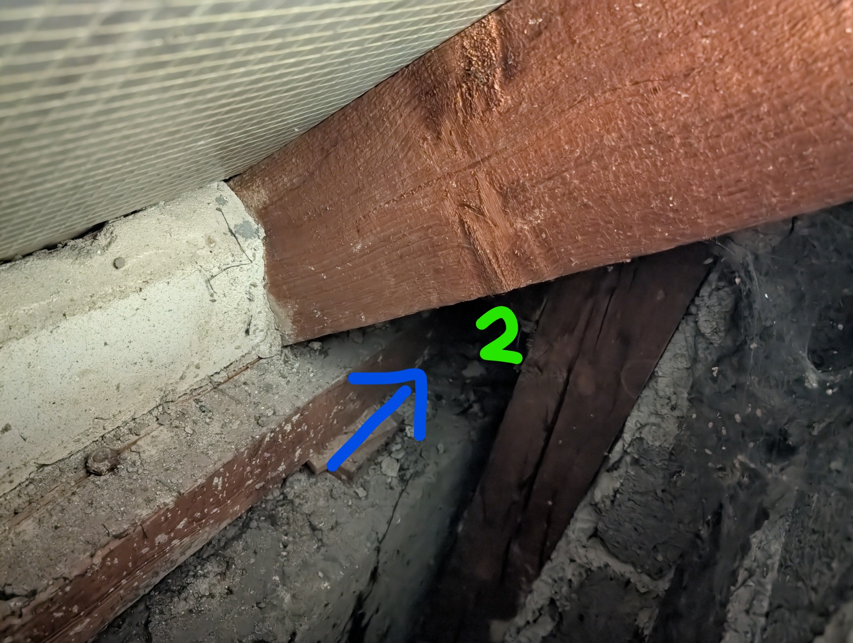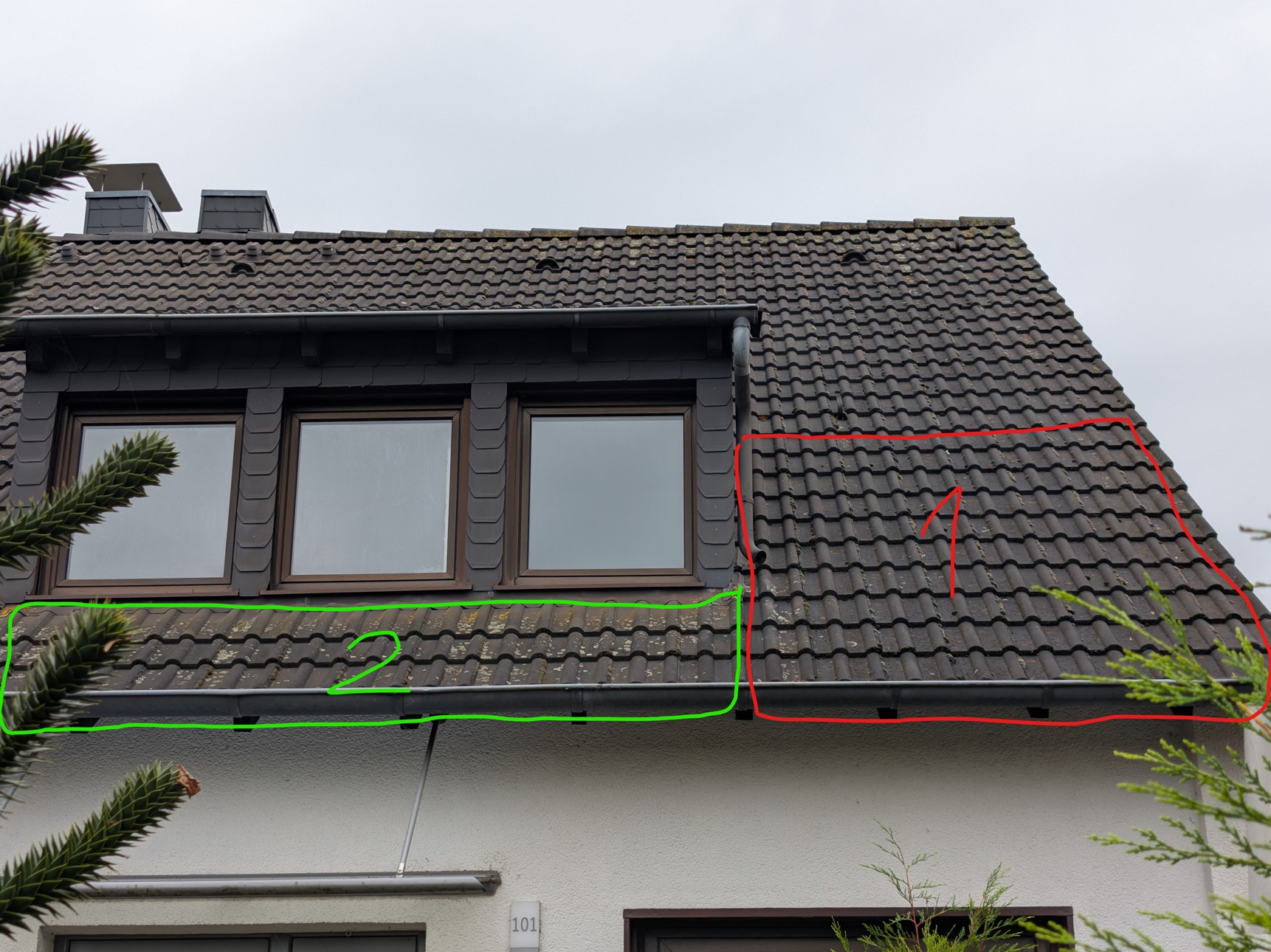 Diskutiere Dach-Teilstück und Hohlraum im Sanierung konkret Forum im Bereich Altbau; Hallo zusammen, mich beschäftigt ein Teilstück des Daches (1) sowie ein Hohlraum (2). Baujahr 1973 Lage: Nordost Betondachziegel...