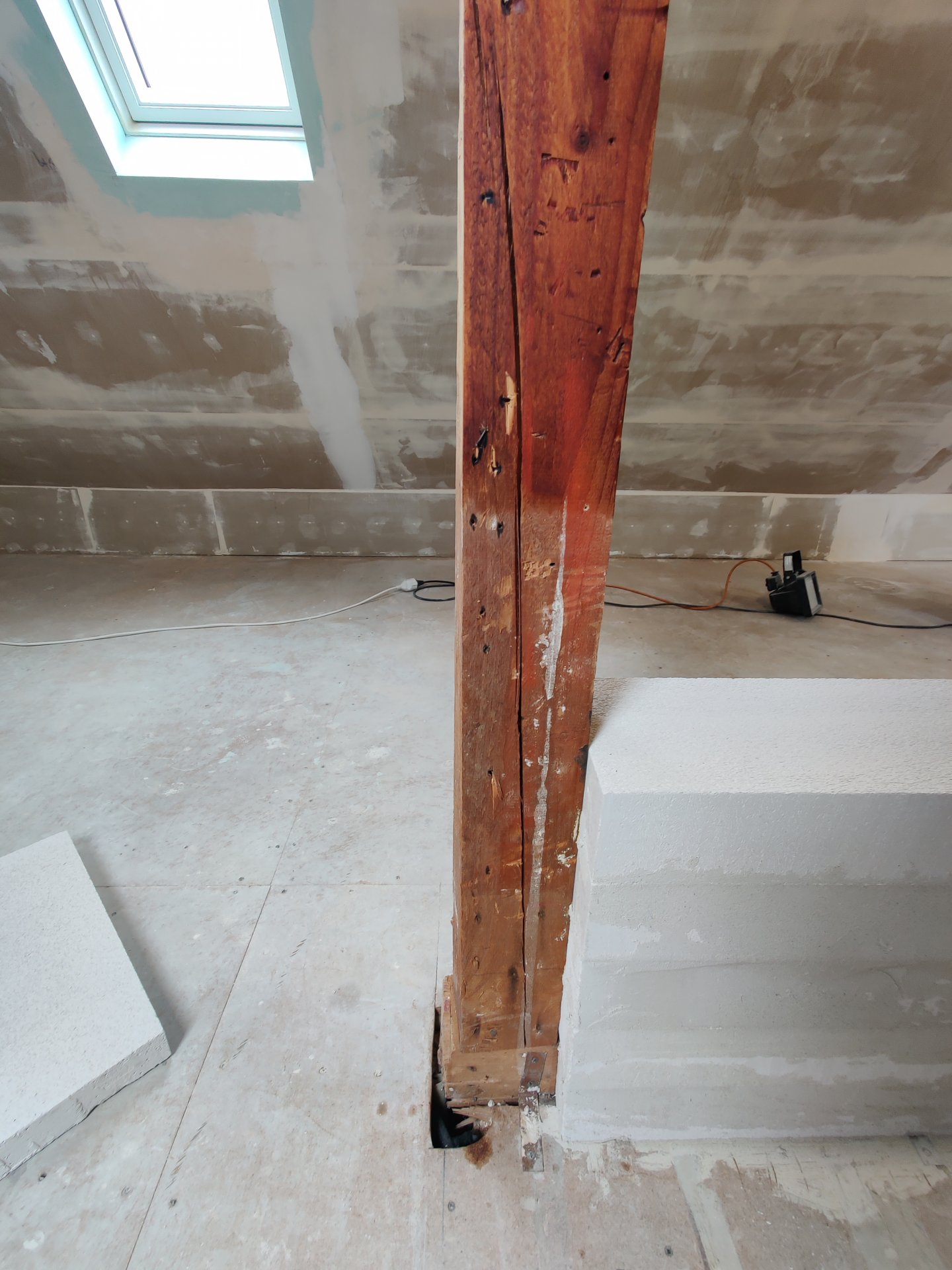 Dachbalken freigelegt - Alu kaschierte Glaswolle teilweise schwarz..