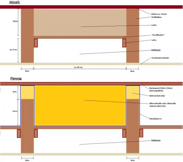 Thema: Dachbodendämmung Hohlraum zwischen "Streifboden" und Strohmattendecke