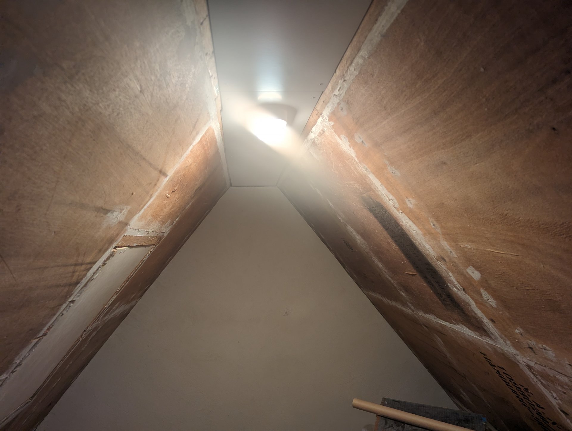 Keine Feuchtigkeit oder sonstige Probleme. Vorher war auf der Holzverschalung Tapete drauf.