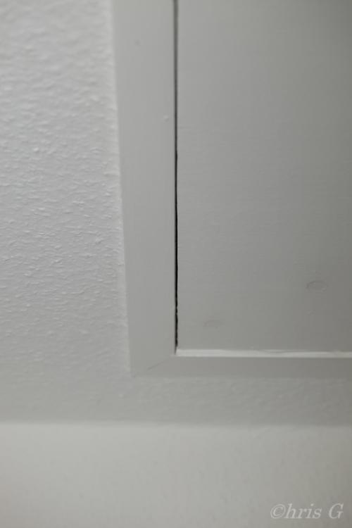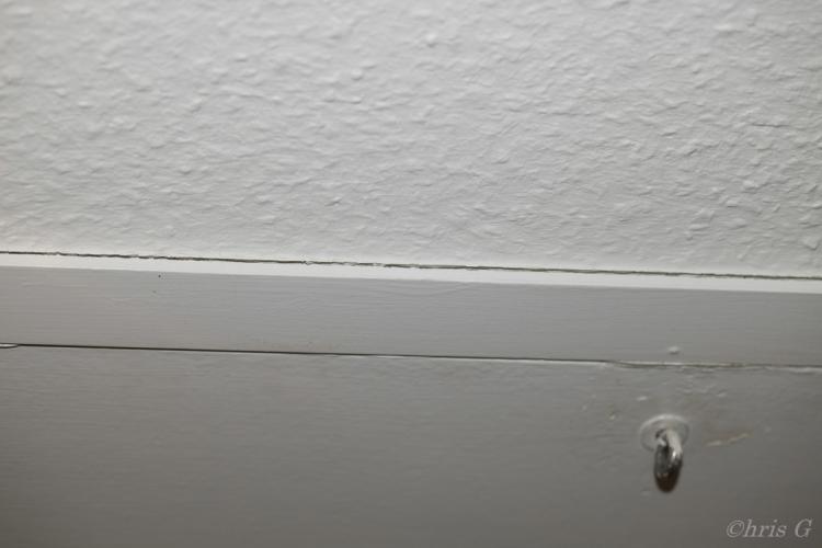 Vorderseite. Hier gibt es einen Spalt zwischen dem umlaufenden Rahmen und der Decke. Einen änlichen Spalt gibt es zwischen Rahmen und Decke auf der linken Seite.