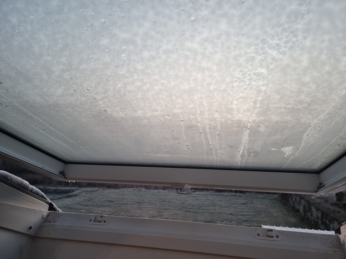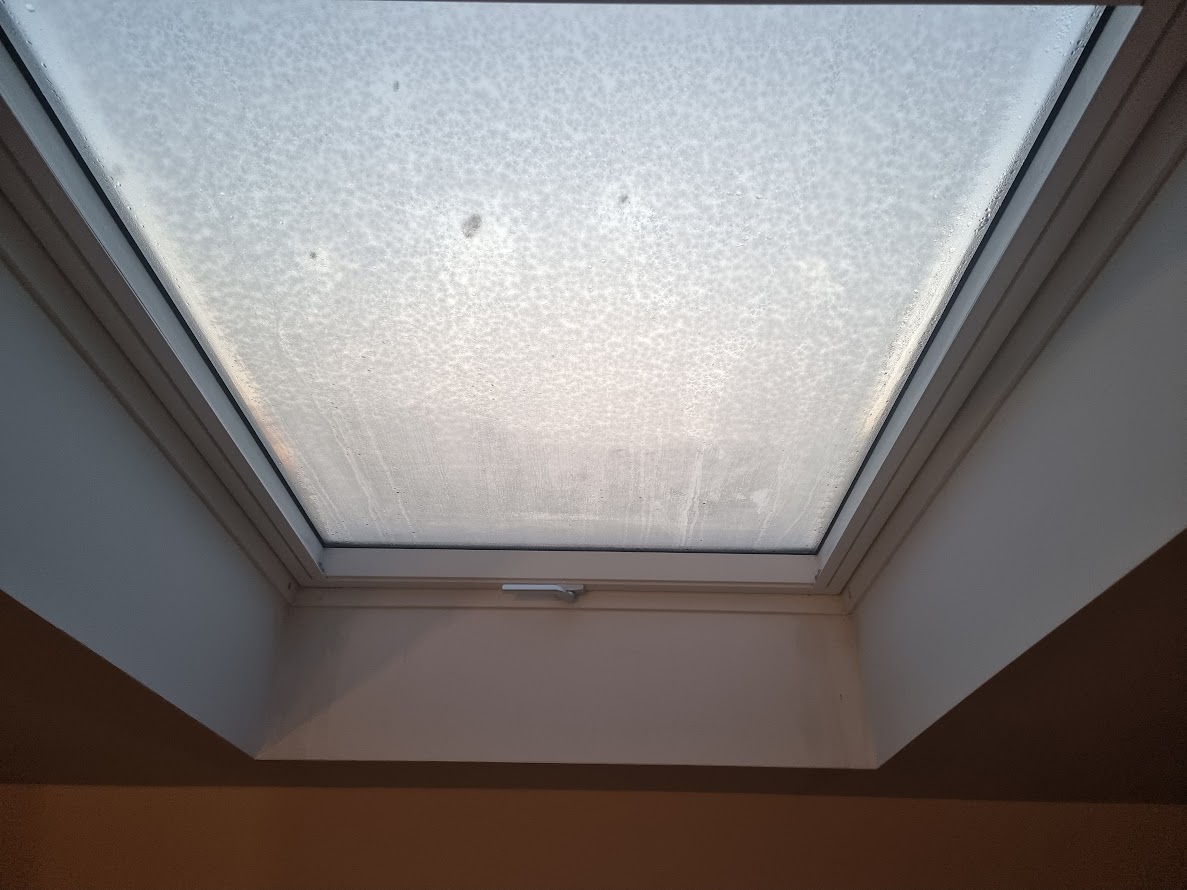Ich sag es dir ehrlich, man kann da weder dem Planer noch dem Zimmermann helfen… Auch wenn die das wieder einmal angeblich noch überhaupt noch nie gehört haben und das immer so machen, so ein zweifach verglastes Standard-Dachfenster im Schlafzimmer in der luftdichten Gebäudehülle… das kann fast nicht gut gehen…