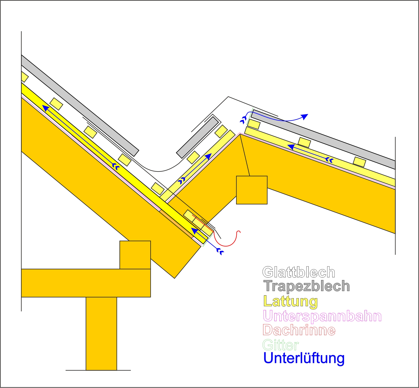 Thema: Dachsanierung - Wie führe ich waagerechte Kehle mit wechselseitigen Abfluss aus (Trapez)