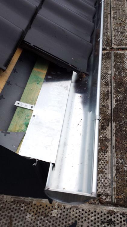 bei uns wurde das Dach komplett neu eindeckt und seit gestern sind die Regenrinnen anmontiert. Heute Morgen sah ich dann folgendes Bild: