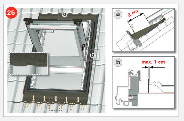 Überstand Dachziegel bei Eindeckrahmen Dachfenster