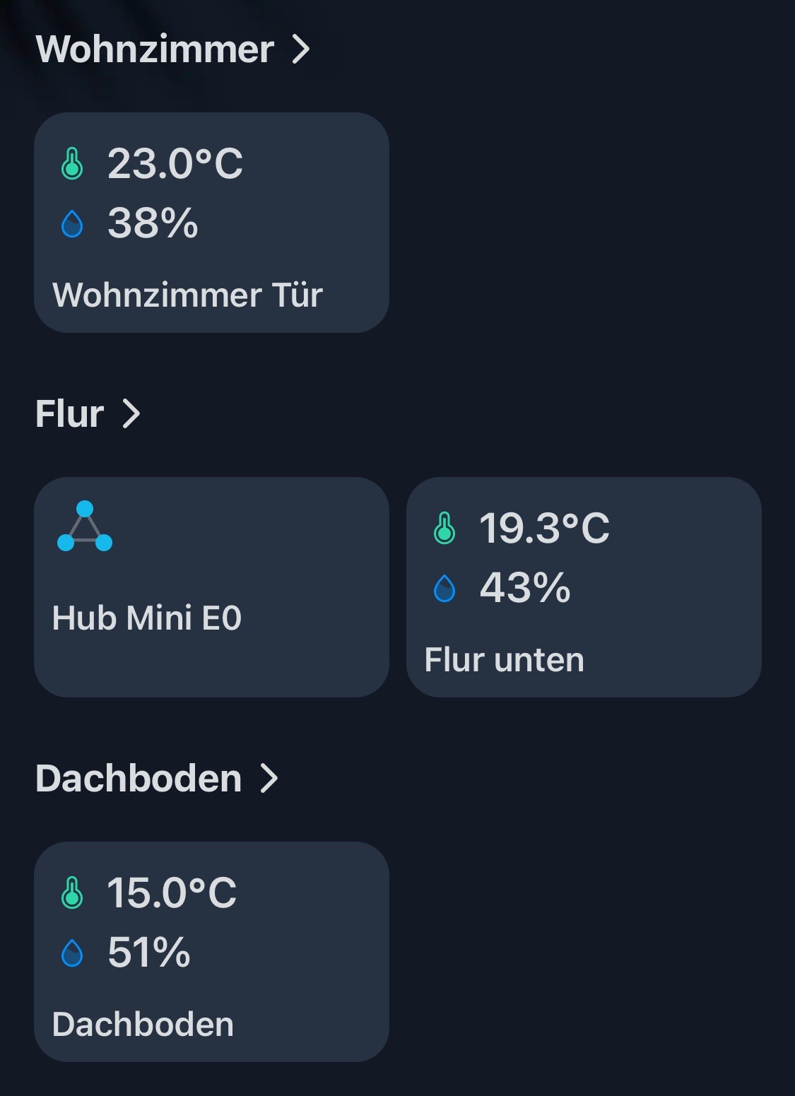 Zwischendecke. Dafür ist überall nur Echtholz um für den Fall der Fälle der Feuchtigkeit die Chance zu geben, dass Gebäude zu verlassen, bzw. nach innen zu verdunsten. Um das ganze zu sichern, habe ich Smartes Thermometer, dass mich warnen soll, wenn das Klima grenzwertig wird.