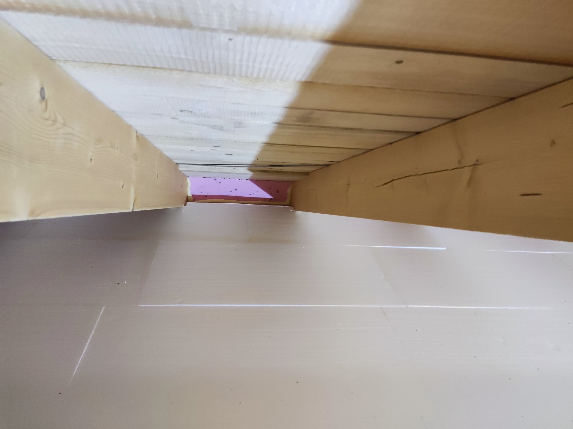 Dämmung hinter Fußpfette vor "Brett": Geschätzte Dachdämmungs-Experten, wie heißen diesee weißen Bretter und wozu dienen sie? Müssen die nicht abgedichtet werden zu den Sparren? Muss... -