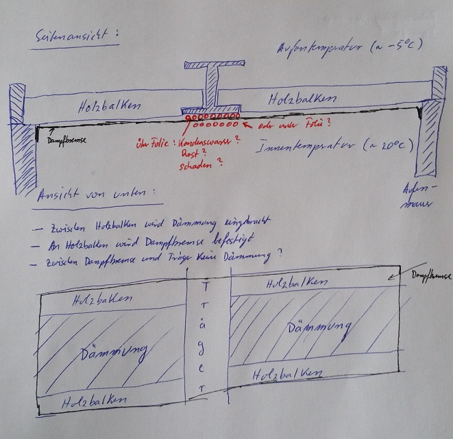 Diskutiere Dämmung in Raum mit Stahlträger im Trockenbau Forum im Bereich Neubau; Hallo und guten Morgen, wir möchten unsere Decke zum Kaltdach dämmen und abhängen. Plan: Dämmwolle einbauen (zwischen Sparren), Dampfbreme...
