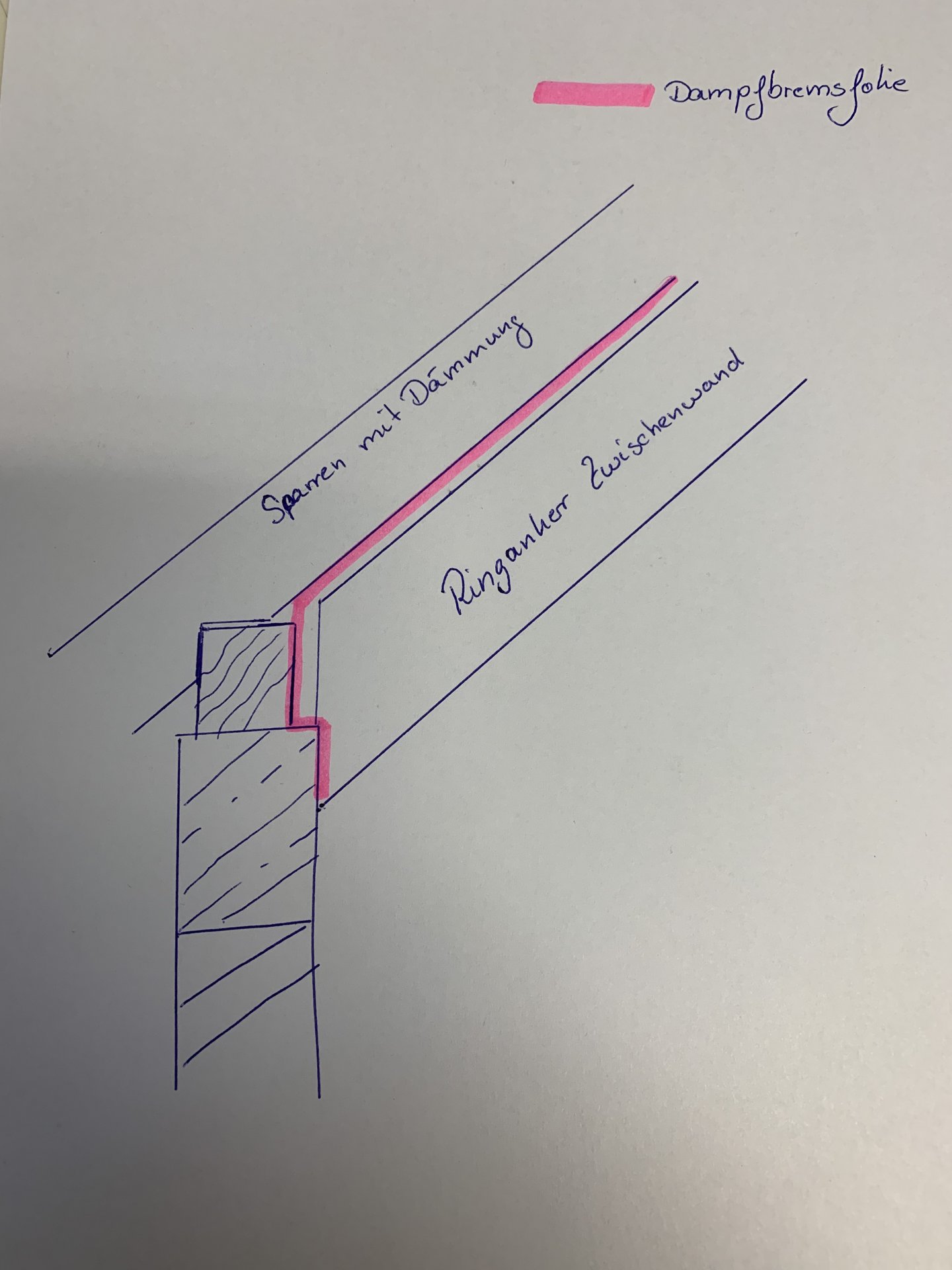 Diskutiere Dampfbremse Zwischenwand Fußpfette im Trockenbau Forum im Bereich Neubau; Hallo Zusammen, ich habe ein kleines Problem bei der Ausführung der Dampfbremse an der Fußpfette im Bereich der Zwischenwand. Vllt. Habt ihr...