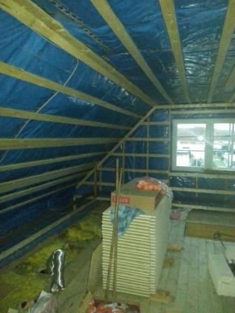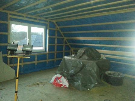Dampfsperre einbauen und Decke mit Rigisplatten abhängen