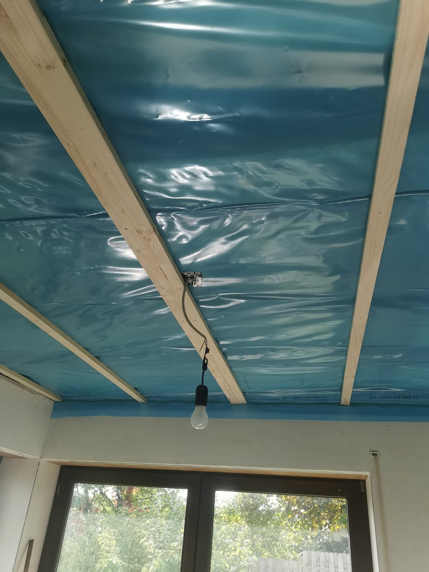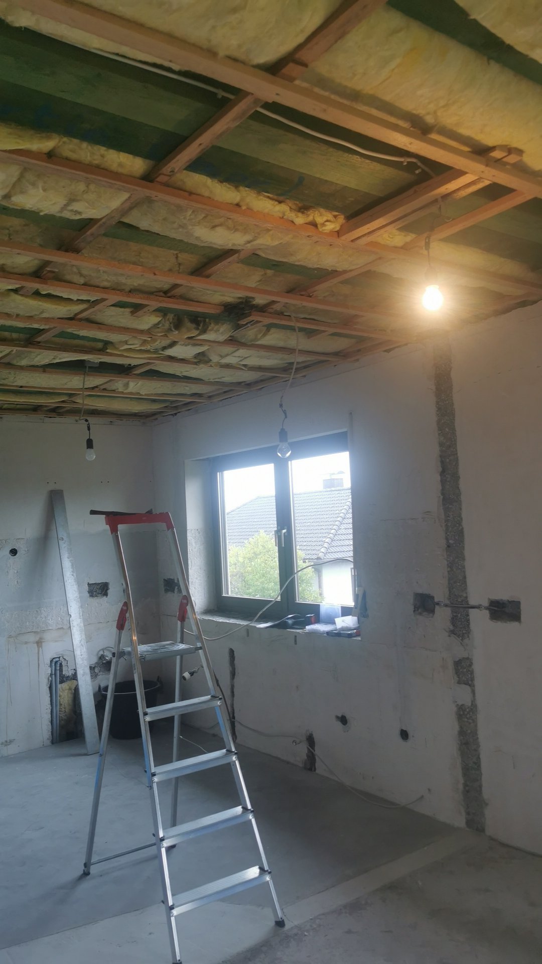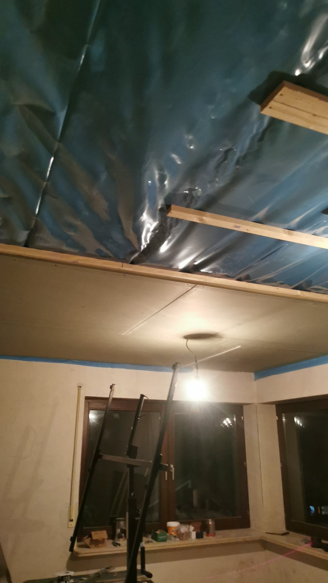 Dampfsperre einbauen und Decke mit Rigisplatten abhängen
