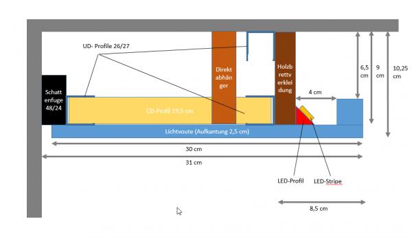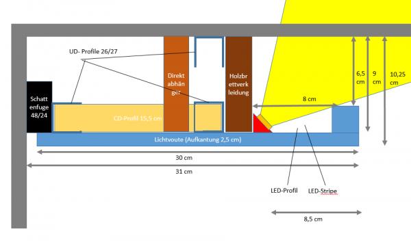 Lichtvoute unter abgehängte Decke: Hallo Experten und Profiheimwerker, ich habe versucht mich hier schon einmal einzulesen, mich mit den Datenblättern der GK-Platten... -