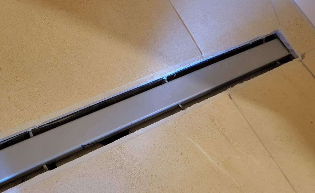 Die Ausführung der Duschrinne würde mir ehrlich gesagt etwas Angst machen. Oder sehe ich das zu negativ? Welcher Hersteller und welches Modell von Duschrinne könnte das sein?