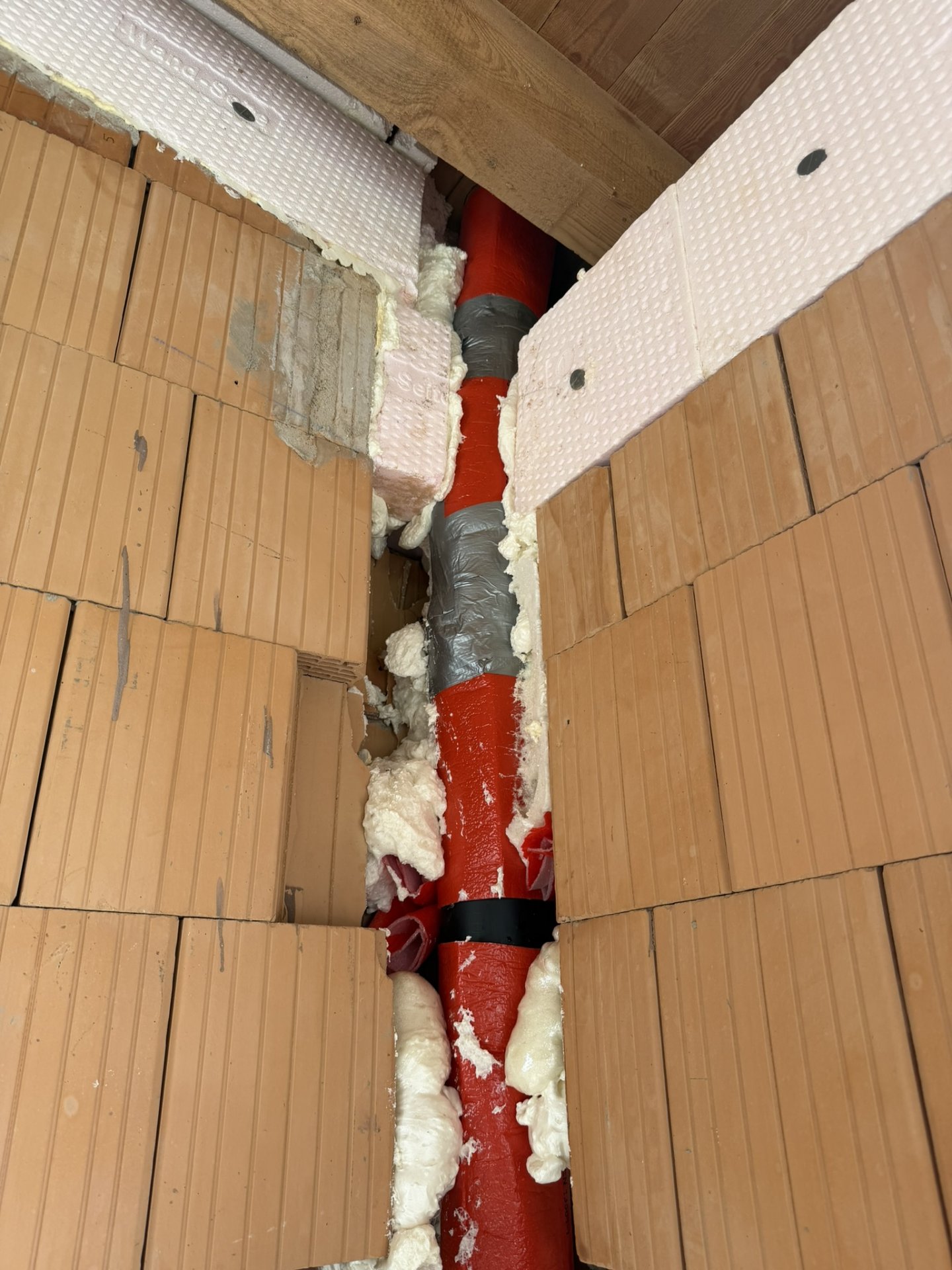 Leider steht das Rohr etwas hervor, es stellt sich die Frage wie ich hier spachteln soll um einen Anschluss für die Dampfsperre herzustellen?
