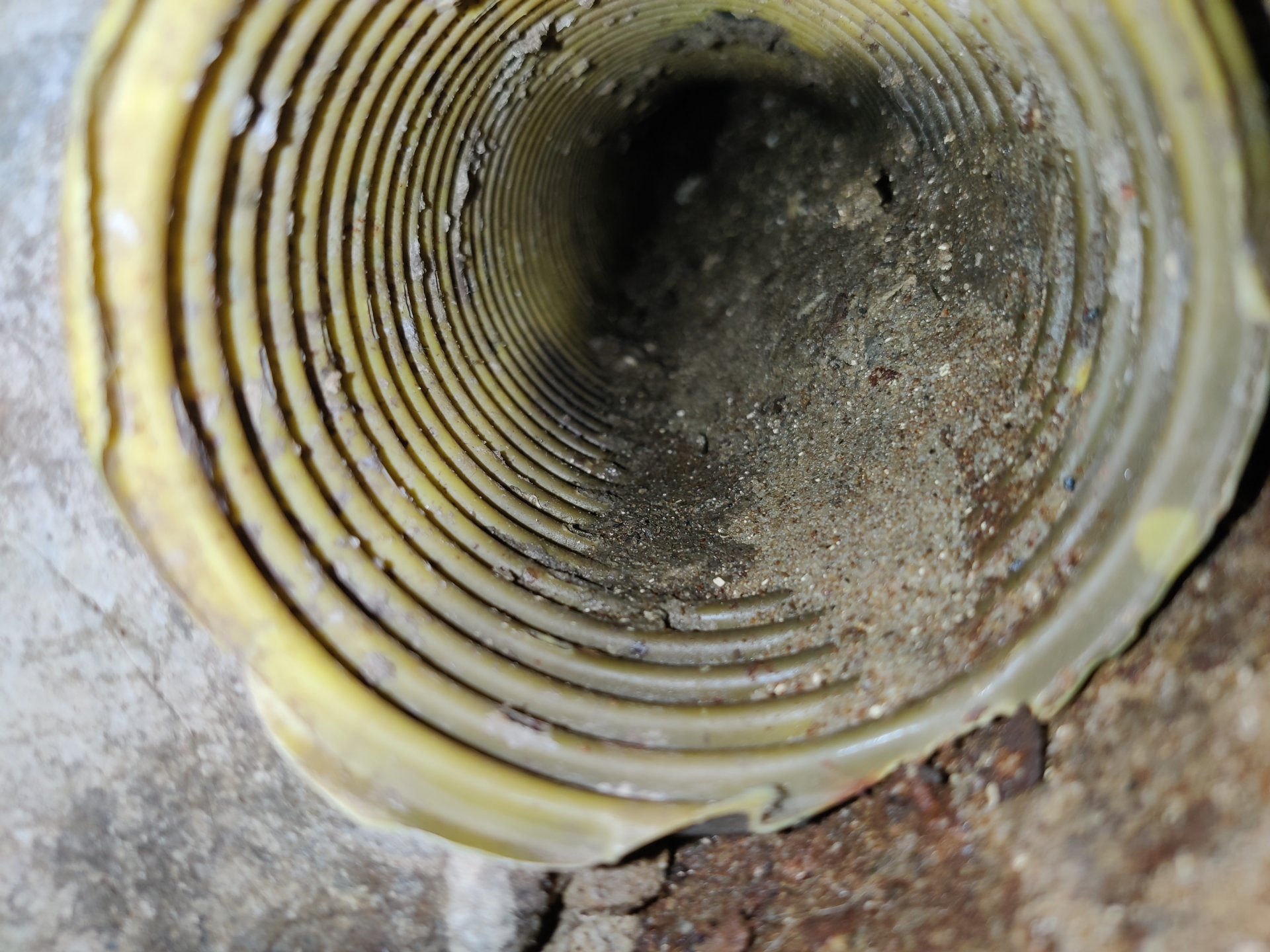 Drainaigerohr im Kellerschacht (Verstopft)