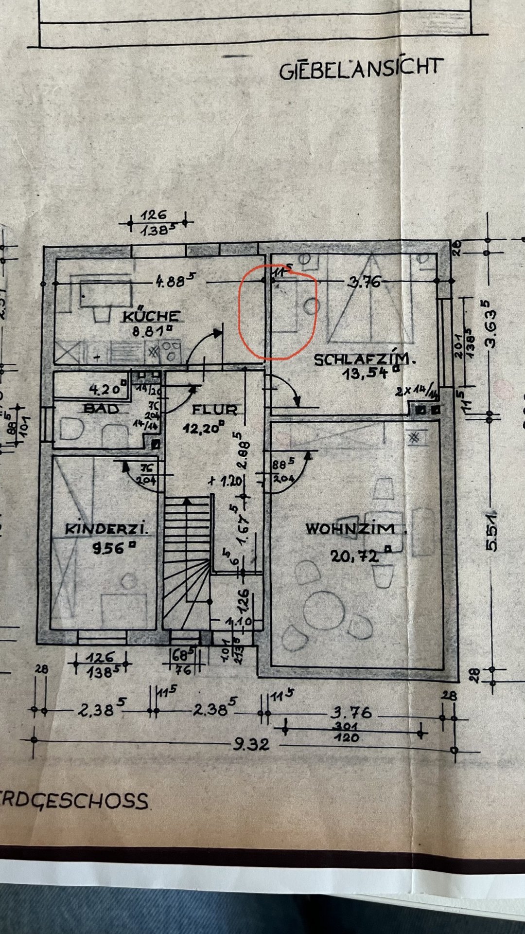 Diskutiere Durchbruch in unserem Haus im Architektur Allgemein Forum im Bereich Architektur; Hallo, wir haben altes gekauft und möchte gerne einen Durchbruch in der eingekreisten Wand machen. 65cm von bleiben rechts stehen und 25cm auf...