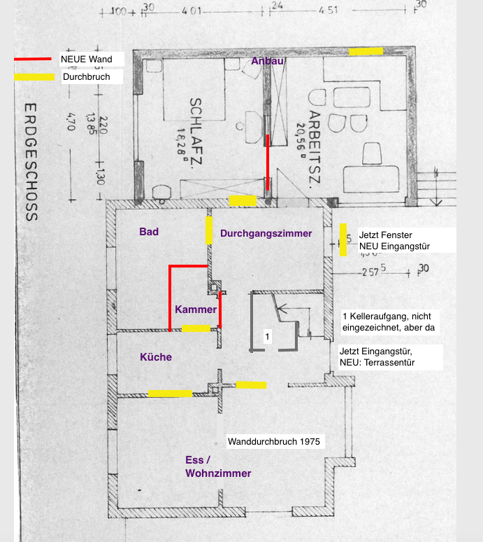 Diskutiere Durchbrüche, neue Wände – Schwachsinn oder sinnvoll? im Sanierungskonzept & Kostenschätzung Forum im Bereich Altbau; Guten Abend, bevor ich mich beim Architekten oder Planer total lächerlich mache, tue ich das lieber hier, im "geschützten" Rahmen. Wir würden...
