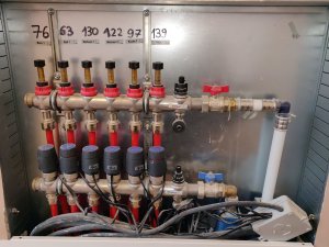 Fussbodenheizung - Durchflussmesser braun: Hallo, Bei mir wurde eine Fussbodenheizung (Cosmo) in einem Neubau (EG, OG, DG) installiert und diese im Jan 2014 provisorisch in Betrieb... -