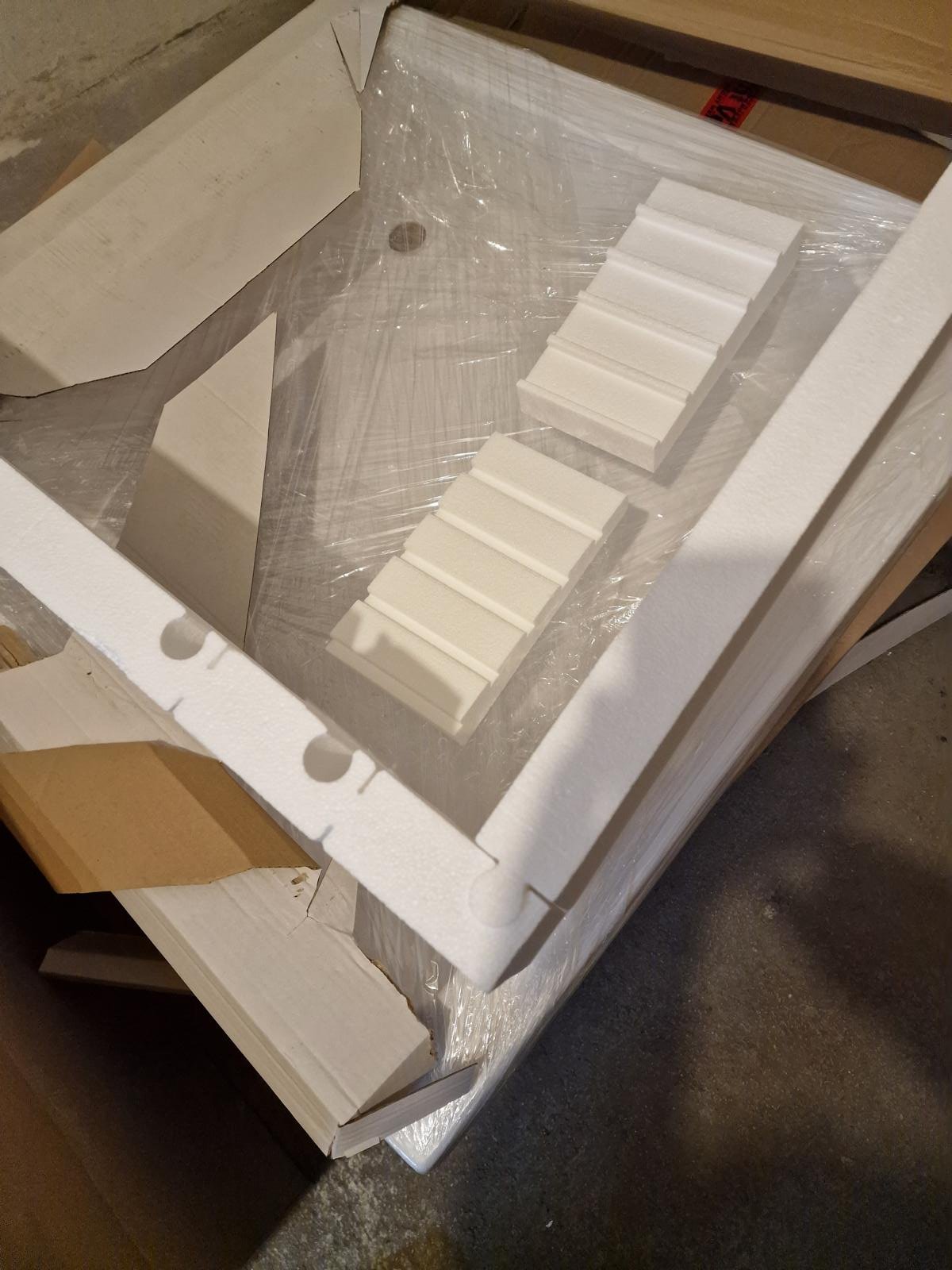 Duschtasse 90 x90 mit Styroporträger auf Betonrohboden der Kellerplatte setzen