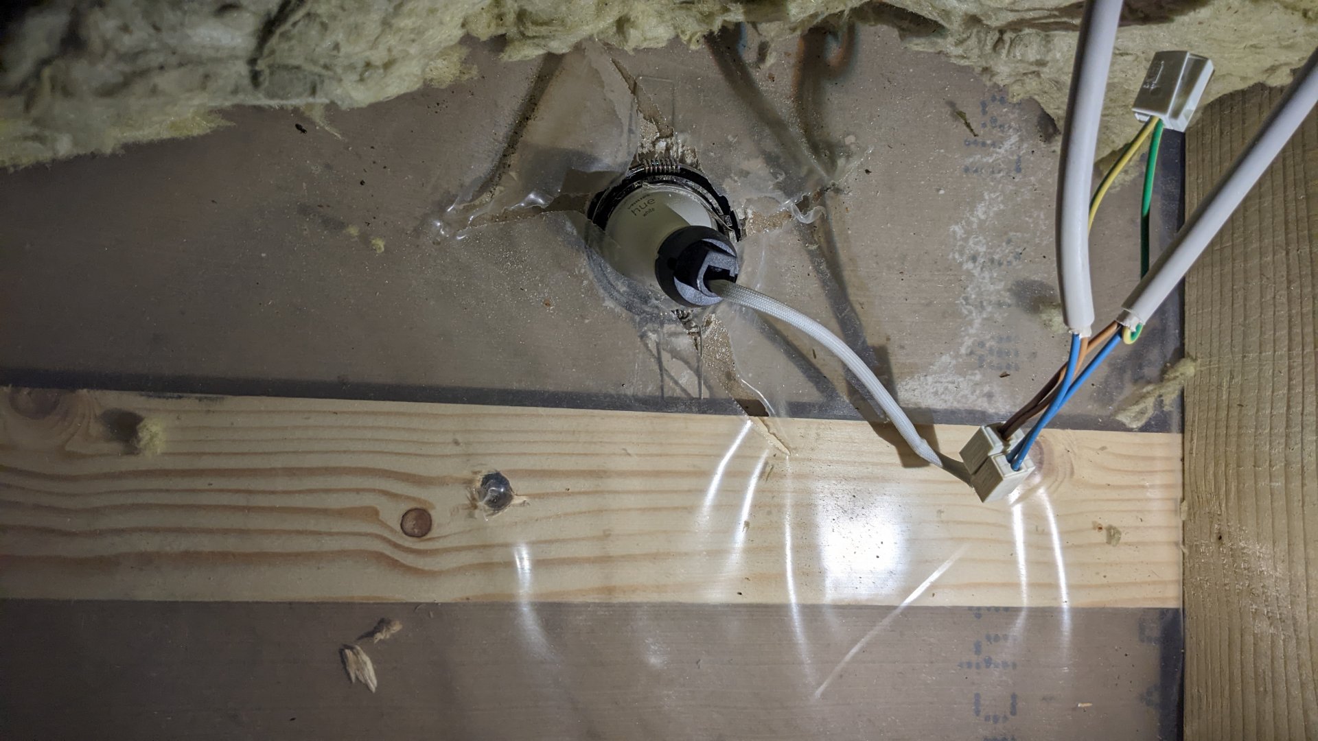 Einbauspots in unkonventioneller oberster Geschossdecke: Hallo liebe Bauexperten, ich hoffe ihr könnt mir mit meinem Problem helfen. Wir haben ein Scheidungshaus BJ 2014 gekauft, in dem das Badezimmer... -