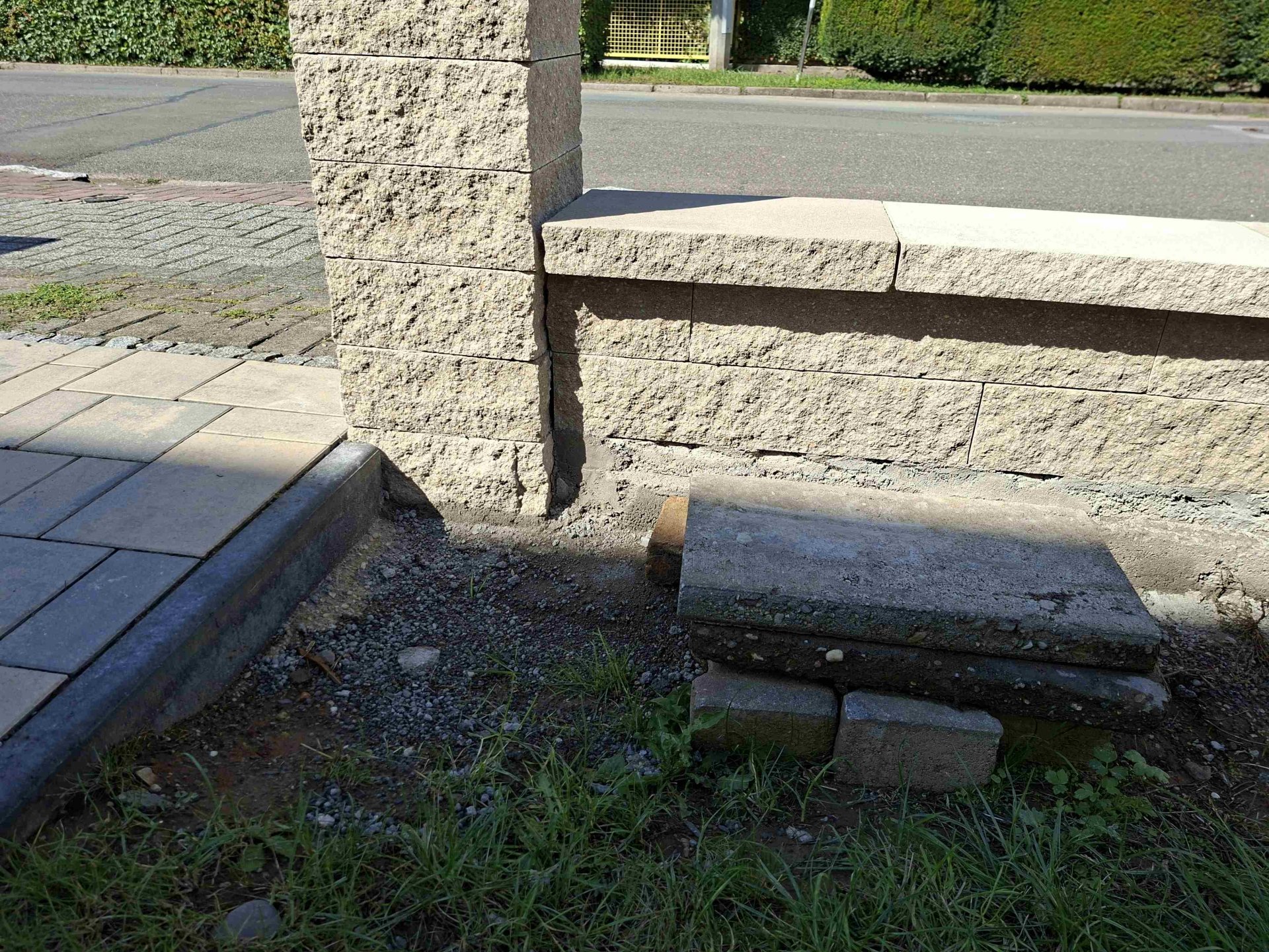 Diskutiere Einfriedung - Fundament höher als Gehweg im Außenanlagen Forum im Bereich Rund um den Garten; Hallo zusammen, wir haben eine Einfriedung mauern lassen. Die Straße ist leicht abschüssig (vorm Gebäude steuend links höher als rechts). Die...