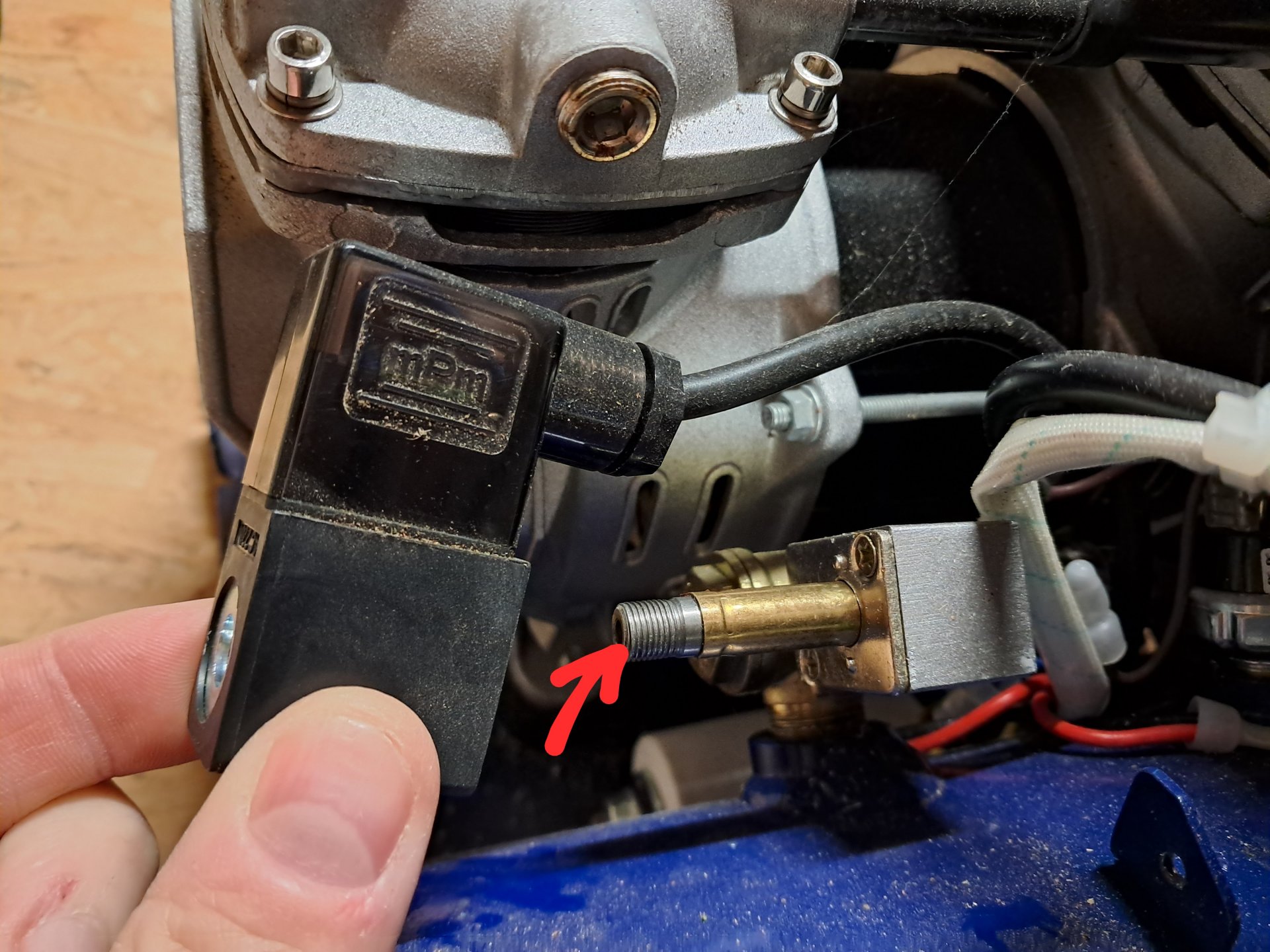 Ich gebe aber zu: Ich verstehe die Funktion dieses Ventils nicht zu 100%. Die Verdichterstufe geht an das Rückschlagventil mit Magnetventil, von da auf den Druckbehälter.