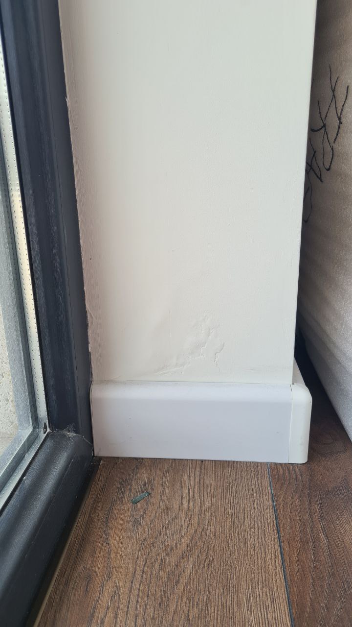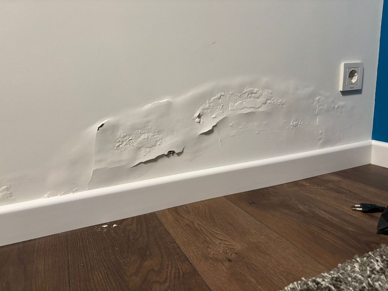 Das Problem ist, dass vor ein paar Tagen viele von uns nach anhaltenden starken Regenfällen Stellen mit Wasserschäden an manchen Innenwänden festgestellt haben (Bilder sind beigefügt, von verschiedenen Wohnungen). Es sind immer die gleichen zwei Muster: 1) Der Putz löst sich durch die Feuchtigkeit vom Mauerwerk ab und bildet Blasen und quillt in etwa 10-40cm über dem Fußboden. 2) Wasser gelangt irgendwie durch die Wand oder die Außenrahmen unserer bodentiefen Fenster nach innen. Bei Starkregen findet das Wasser dann seinen Weg in die Wohnung und tropft oben vom Fensterrahmen auf den Fußboden.