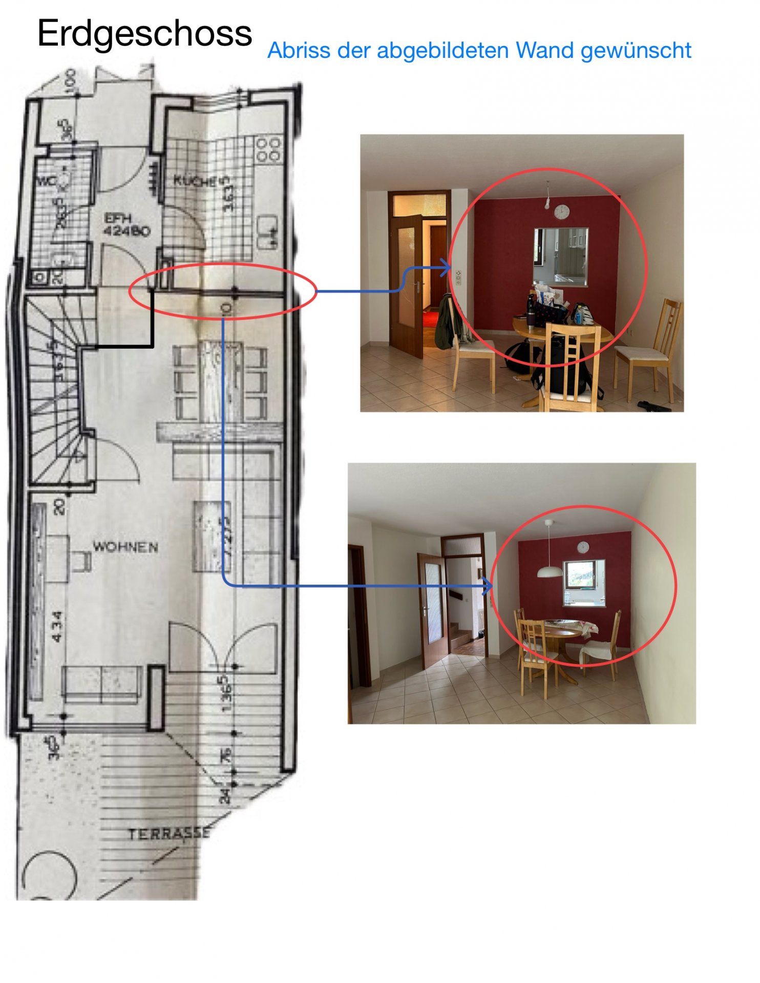 Diskutiere Einschätzung zu Wandentfernung im Reihenmittelhaus (EG & DG) im Bauphysik allgemein Forum im Bereich Bauphysik; Hallo zusammen, wir werden in Kürze in unser Reihenmittelhaus einziehen und planen im Zuge der Renovierung einige Änderungen im Grundriss....