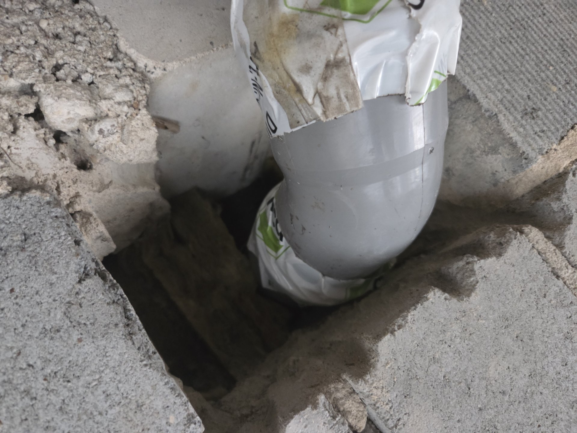 2. nbekanntes Rohrstrang vom Dach ins Bad (70er-Jahre-Whg., DG) – vermutlich Entlüftung. Wie fachgerech