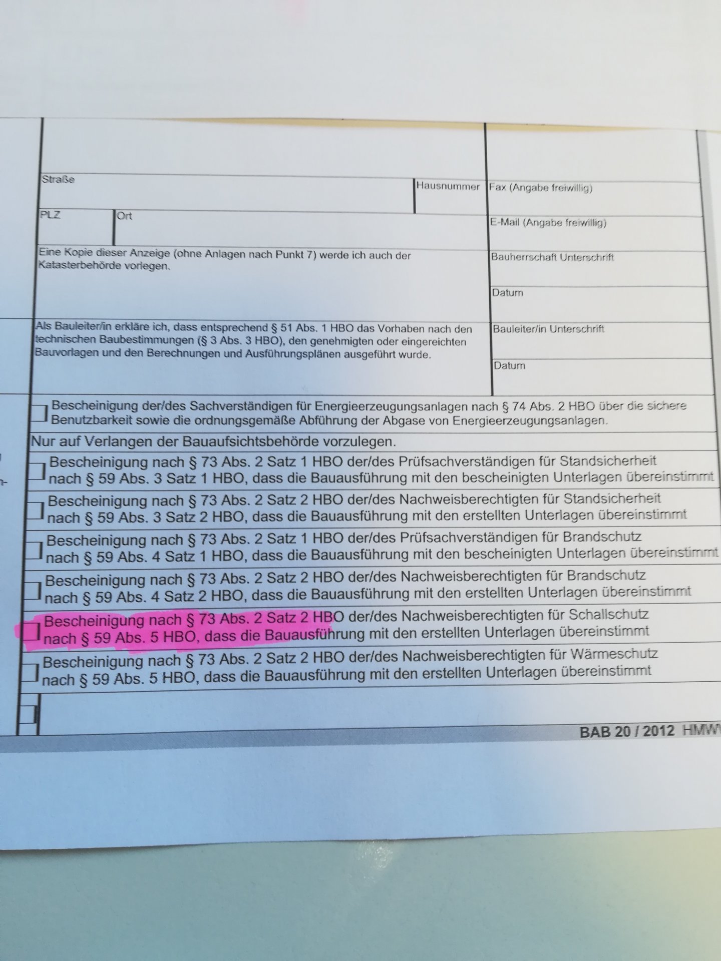 Erklärung Schall- und Erschütterungschutz erforderlich?: Hallo Experten, ich habe meine Baugenehmigung bekommen. Dort steht, dass vor Baubeginn die "Erklärung zum Schall- und Erschütterungsschutz"...