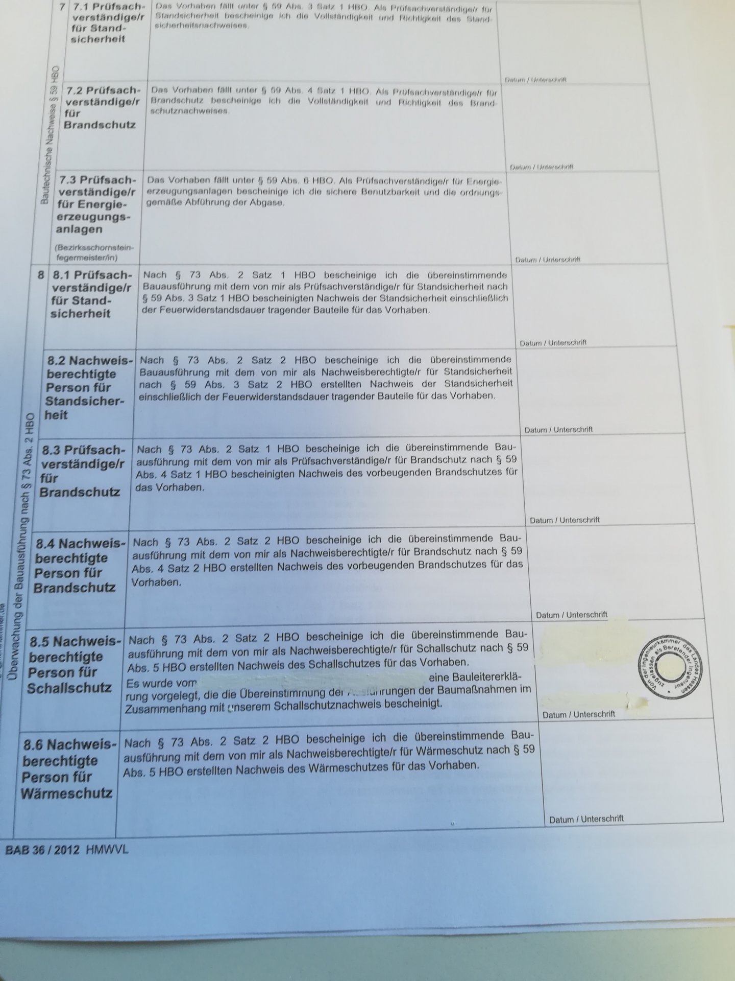 Hilfe! Behörde verlangt Erklärung über die Bauausführung (statisch-konstruktive Bauüberwachung)