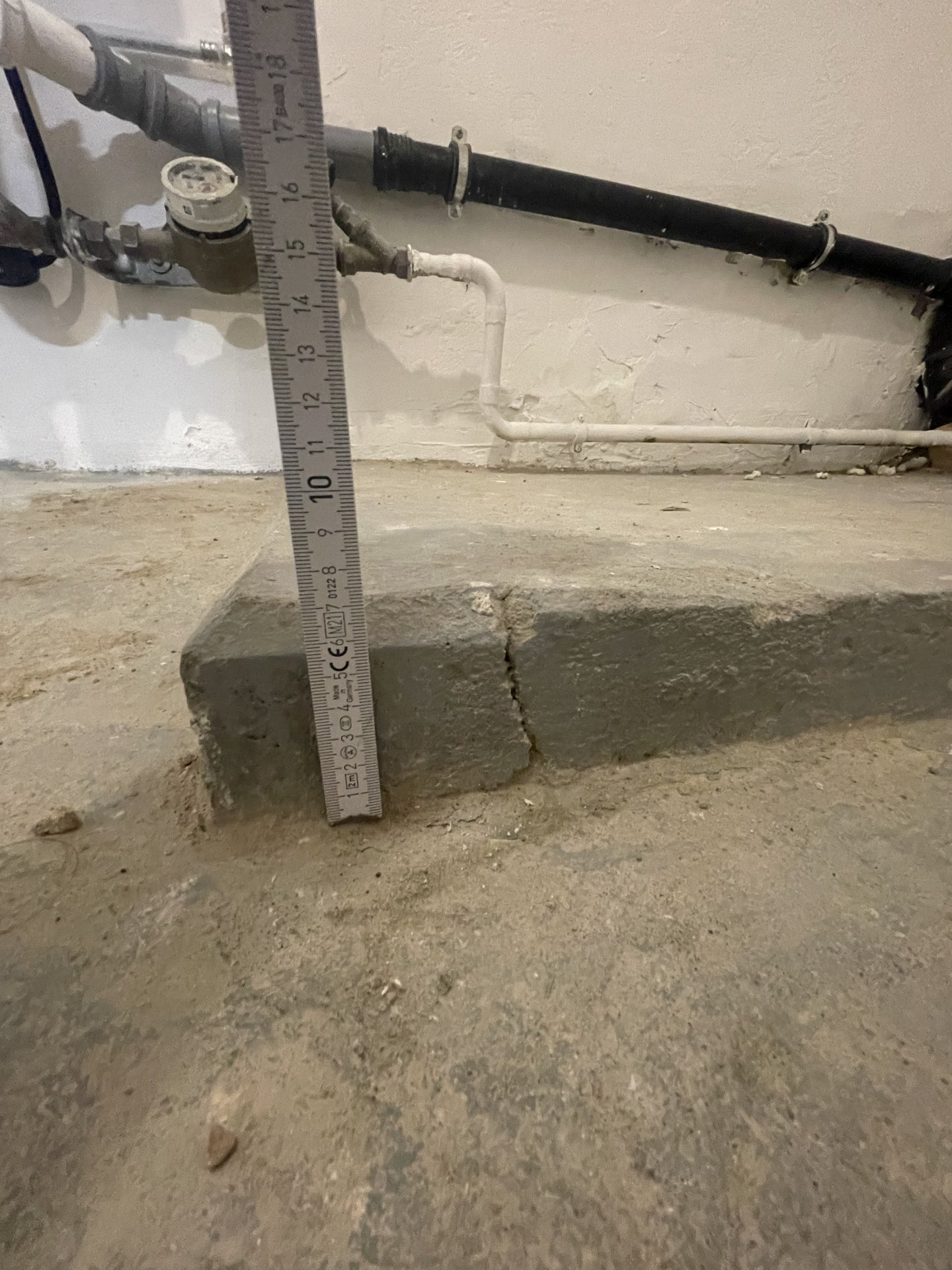 Estrichsockel erweitern: Anbau von Estrich an Estrich für Waschmaschinenpodest