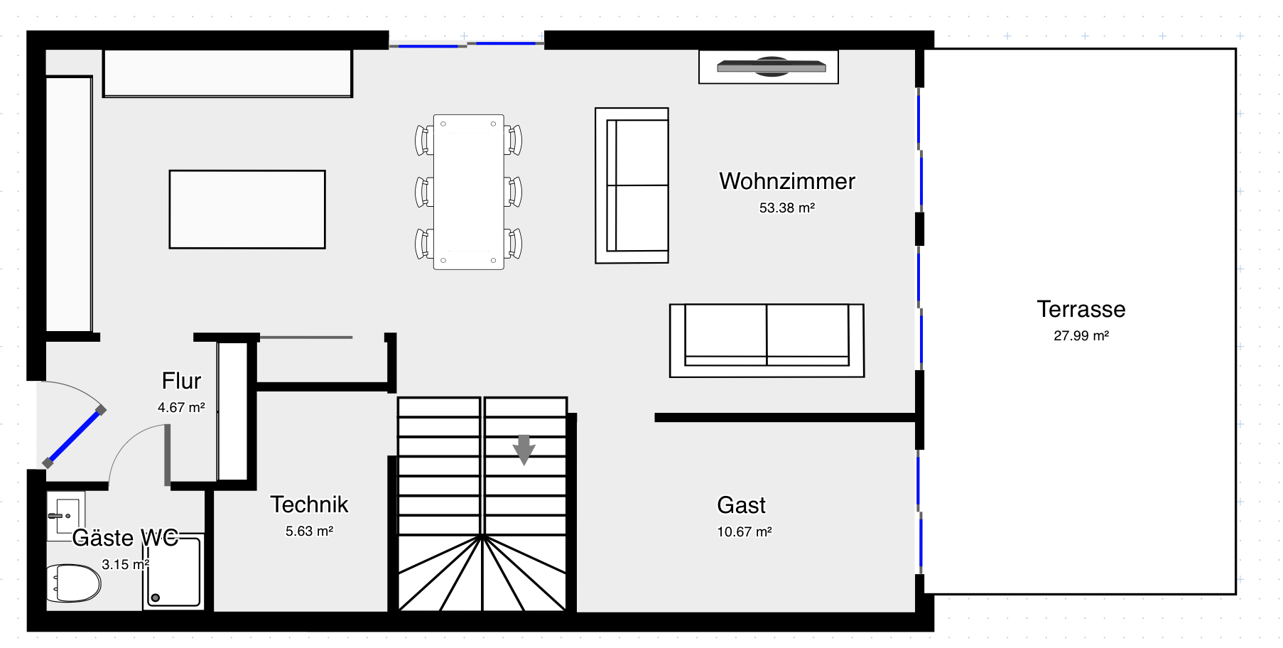 Hat uns so von allen Grundrissen am besten gefallen. Und meine bessere Hälfte wollte keine Tür zum Eingangsbereich.