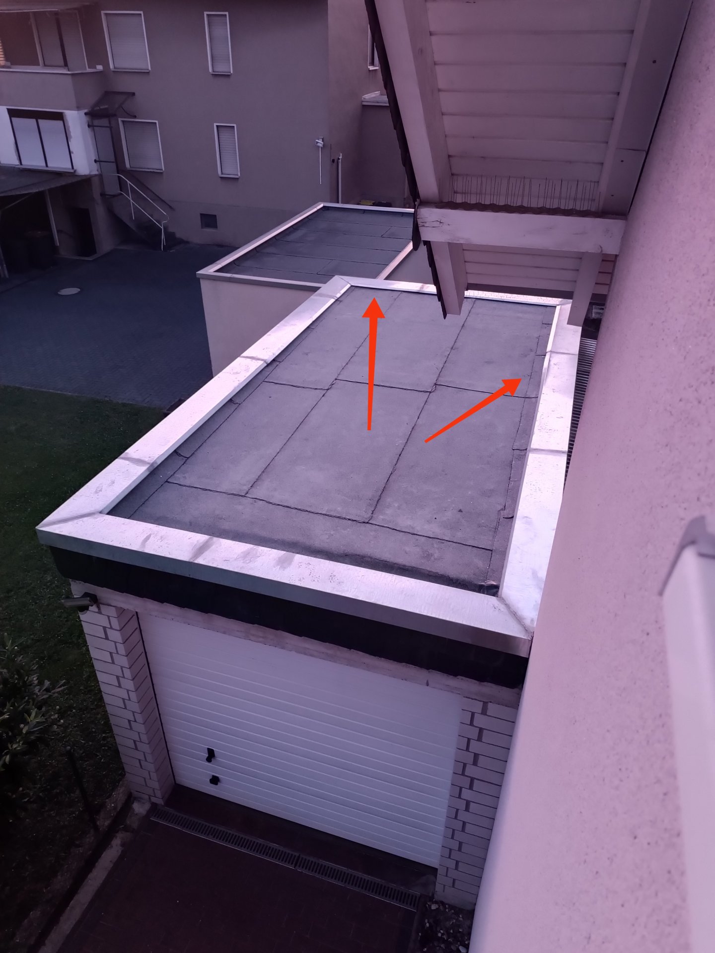 Diskutiere Fachgerecht oder nicht? Garagenflachdach im Dach Forum im Bereich Neubau; Siehe Bilder (rote Pfeile) Es wurde ein Gefälle nachträglich angelegt. Ist der Dachrand hinten noch hoch genug? Ist der Dachrand fachgerecht...
