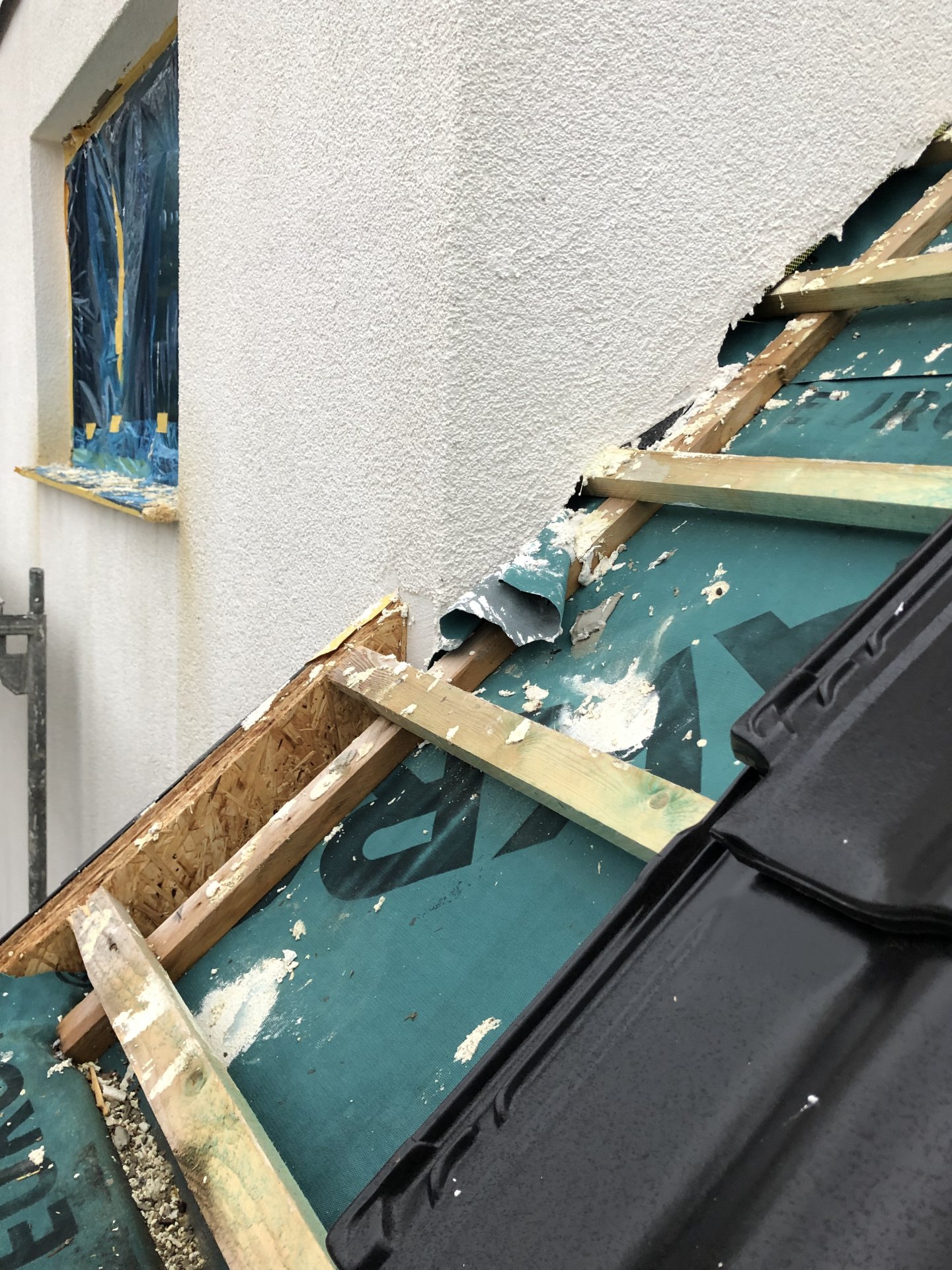 Diskutiere Fehlende Abdichtung bei der Gaube an der Hauswand? Schimmel? im Dach Forum im Bereich Neubau; Hallo, unser Bauunternehmen kam auf die glorreiche Idee am Montag bei Regen die Wände der Gaube zu verputzen. Dafür haben sie die Dachpfannen...