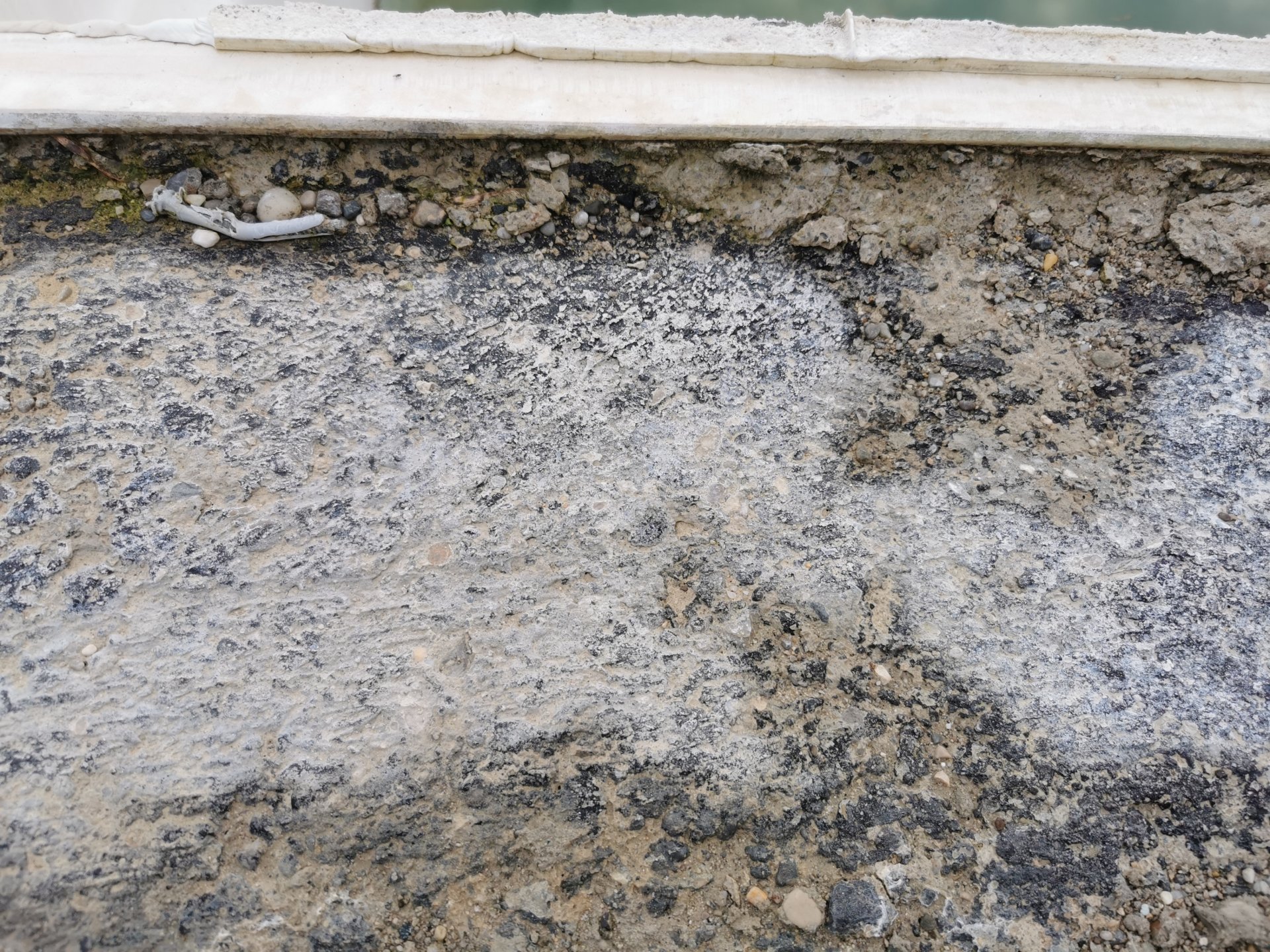 Ursprünglich gab es keinen Leistenstein und daher nur den Sockel als Wand. Darauf waren Terrassenplatten gelegt und verfugt. Die waren aber großteils kaputt und wurden daher abgestemmt. Mit neuer Terrasse etc wurde der Leistenstein gesetzt ringsrum. Dadurch hat sich eine kleine Rinne ergeben. Ablauf gibt es dort nirgends. Daher die Überlegung alles eben aufzubetonieren, Dichtanstrich drauf und Fliesen draufkleben?