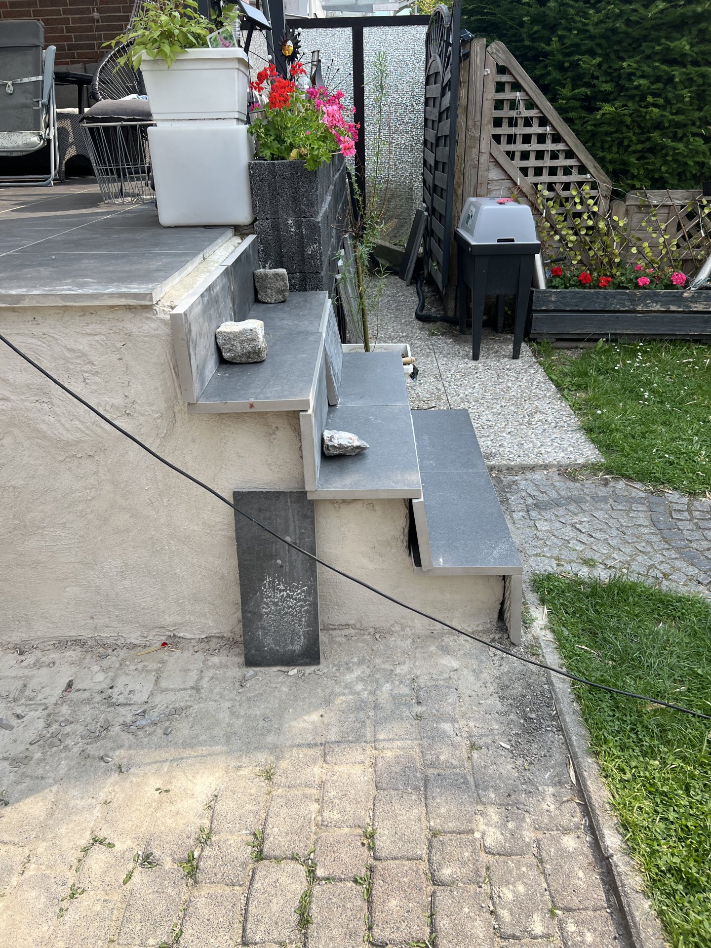 Diskutiere Feinsteinzeugplatten 3 cm als Treppenstufen benutzen im Bastelecke Forum im Bereich Rund um den Bau; Hallo zusammen, sind dabei die Treppenstufen der Terrasse zum Garten zu fertigen. Haben die Platten heute geschnitten und wollen sie morgen...