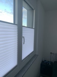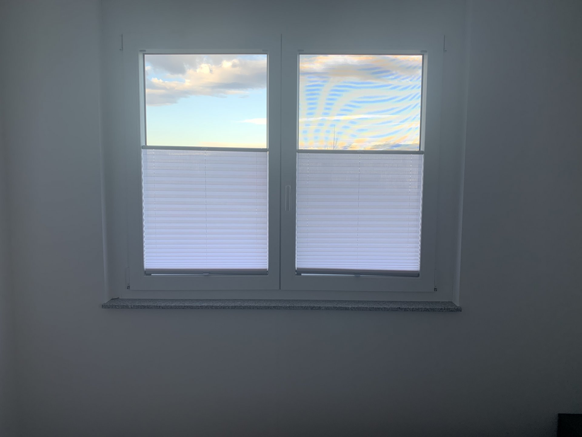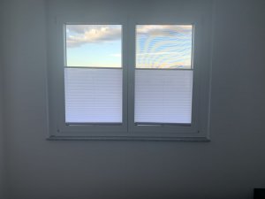 Schlafzimmer: Die Raffstores sind nur tagsüber unten als Sichtschutz. Da wir nachts die Rolläden unten haben, habe ich diese zusammen geklappt in die Mitte, hat nicht wirklich was gebracht. Kondensat ist trotzdem da.