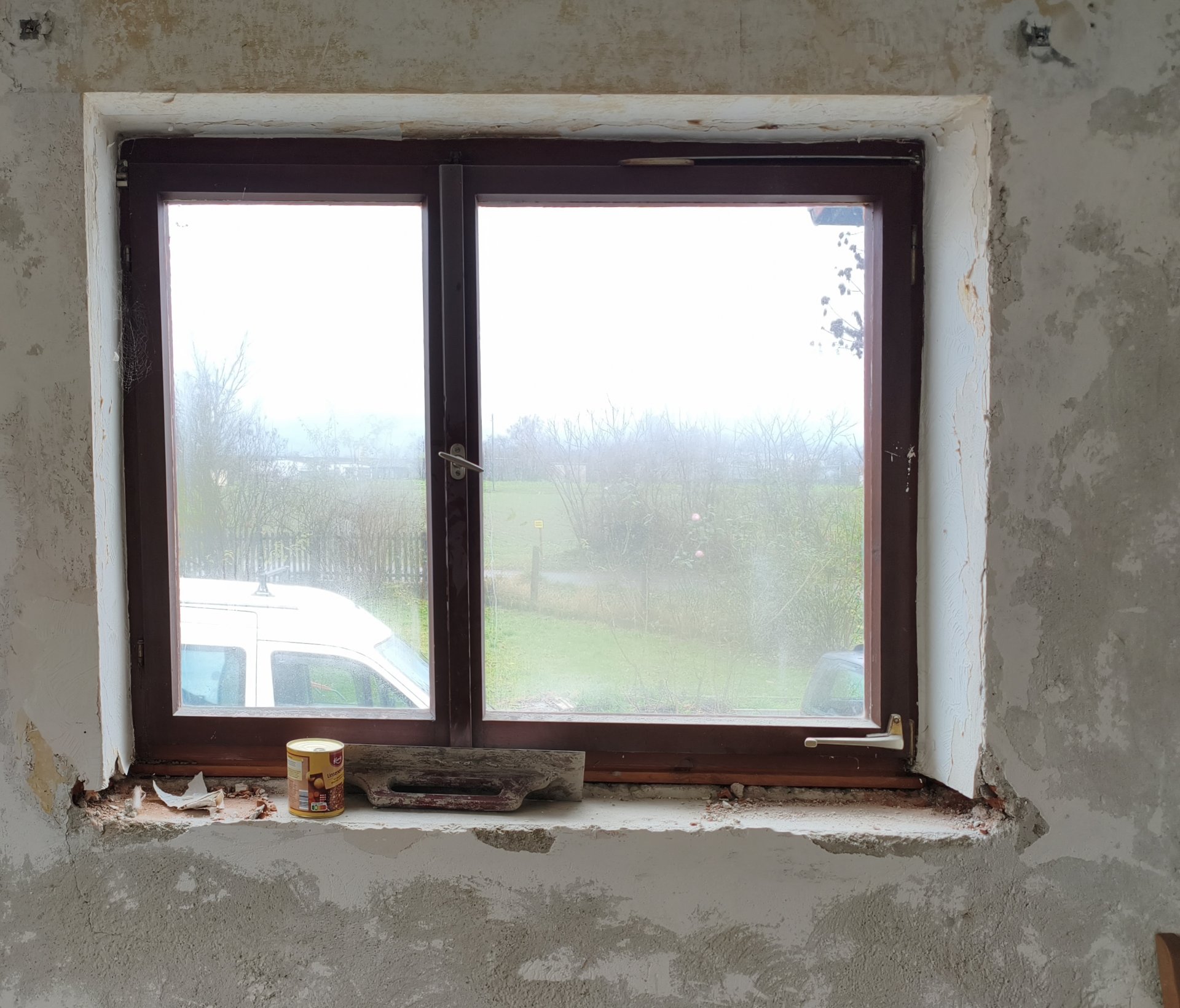 Breite der Fensterausschnitte 150cm Laibung ist bis auf Ziegel entfernt