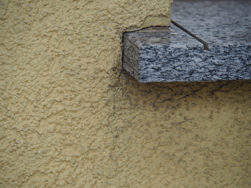 Fensterbänke WDVS Fassade, Kerbrisse in den Fensterecken