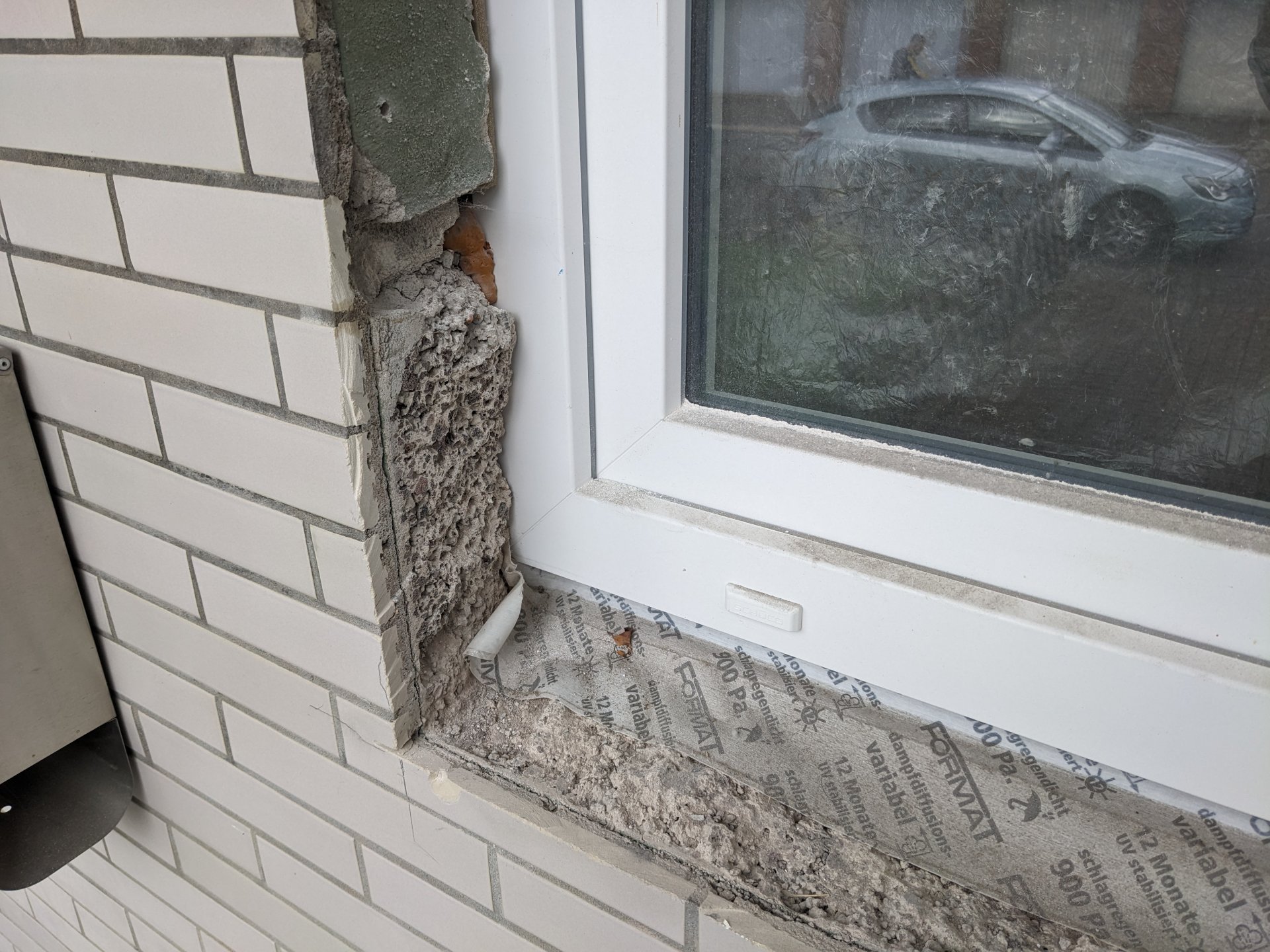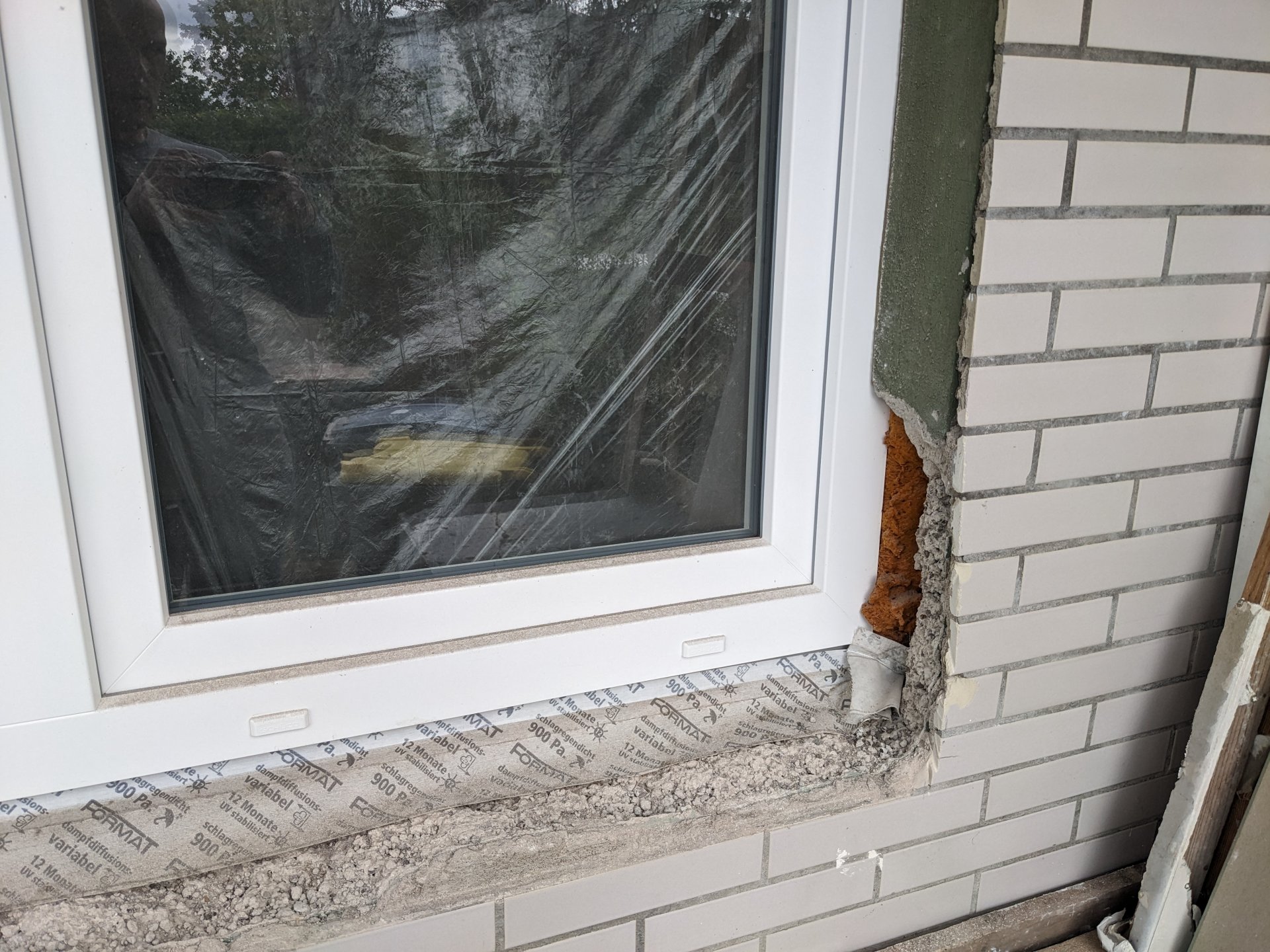 Fensterlaibung heute ohne Abtropfkante?: Hallo Experten, ich bin nur Laie aber frage mich gerade ob die 3 Gewerke Zimmerer, Fensterbauer und Verputzer, die hier an einer Laibung...