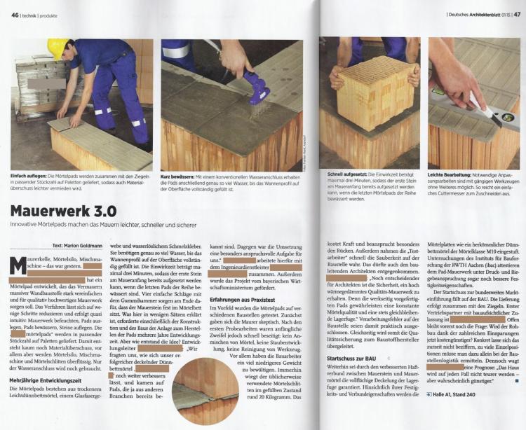 Diskutiere Fertigmörtelpads für Planziegelmauerwerk im Mauerwerk Forum im Bereich Neubau; Ein gesundes neues Jahr Euch allen, anbei ein Scan aus dem deutschen Architektenblatt Baden-Württemberg über Fertigmörtelpads, Werbung wurde...